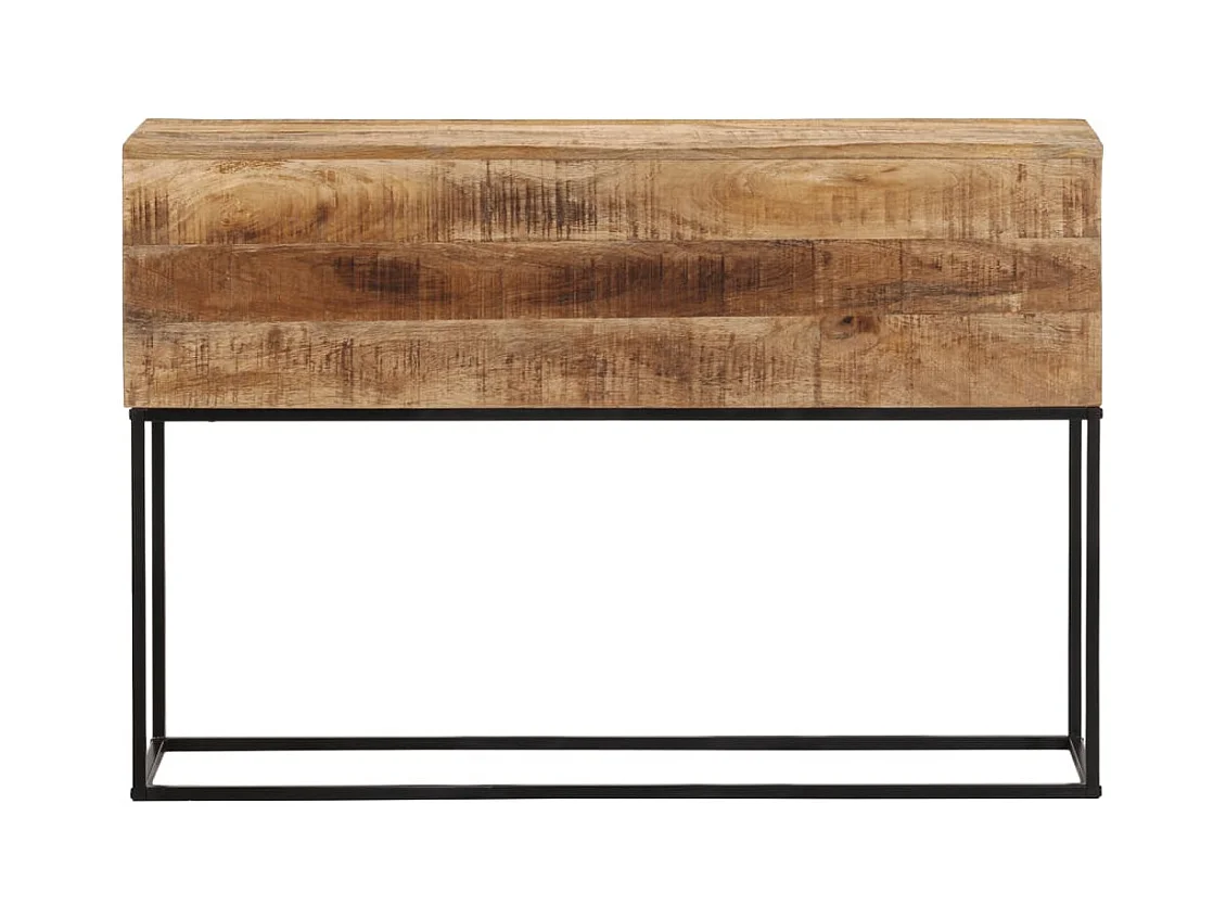 Mesa consola madera maciza mango rugosa y hierro 110x30x75 cm