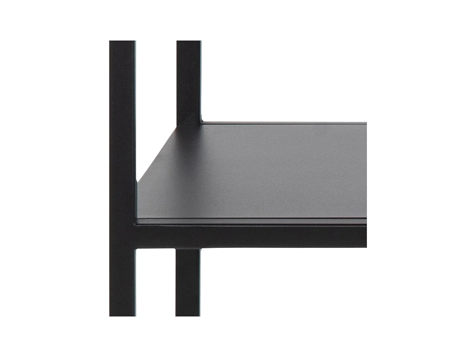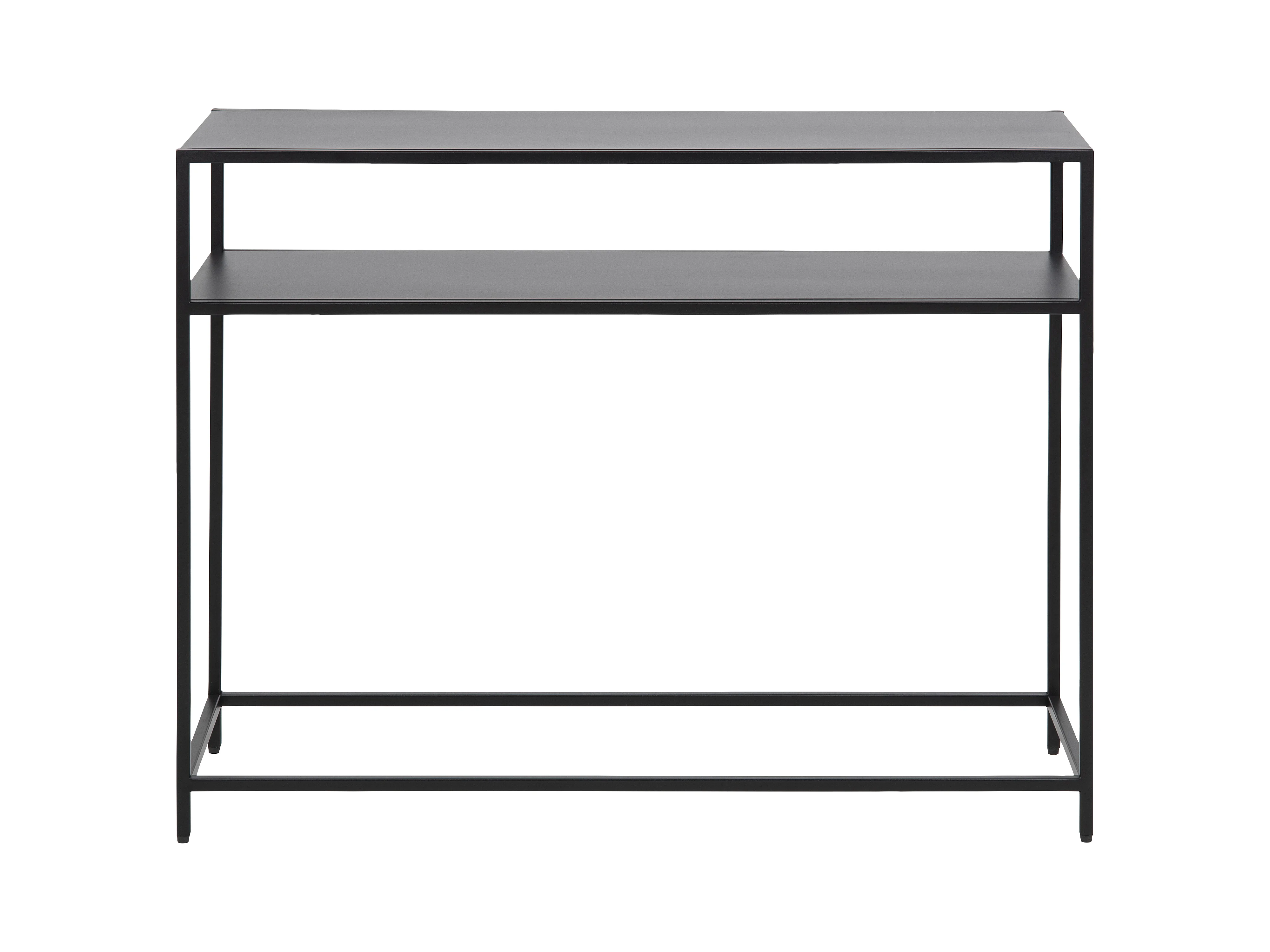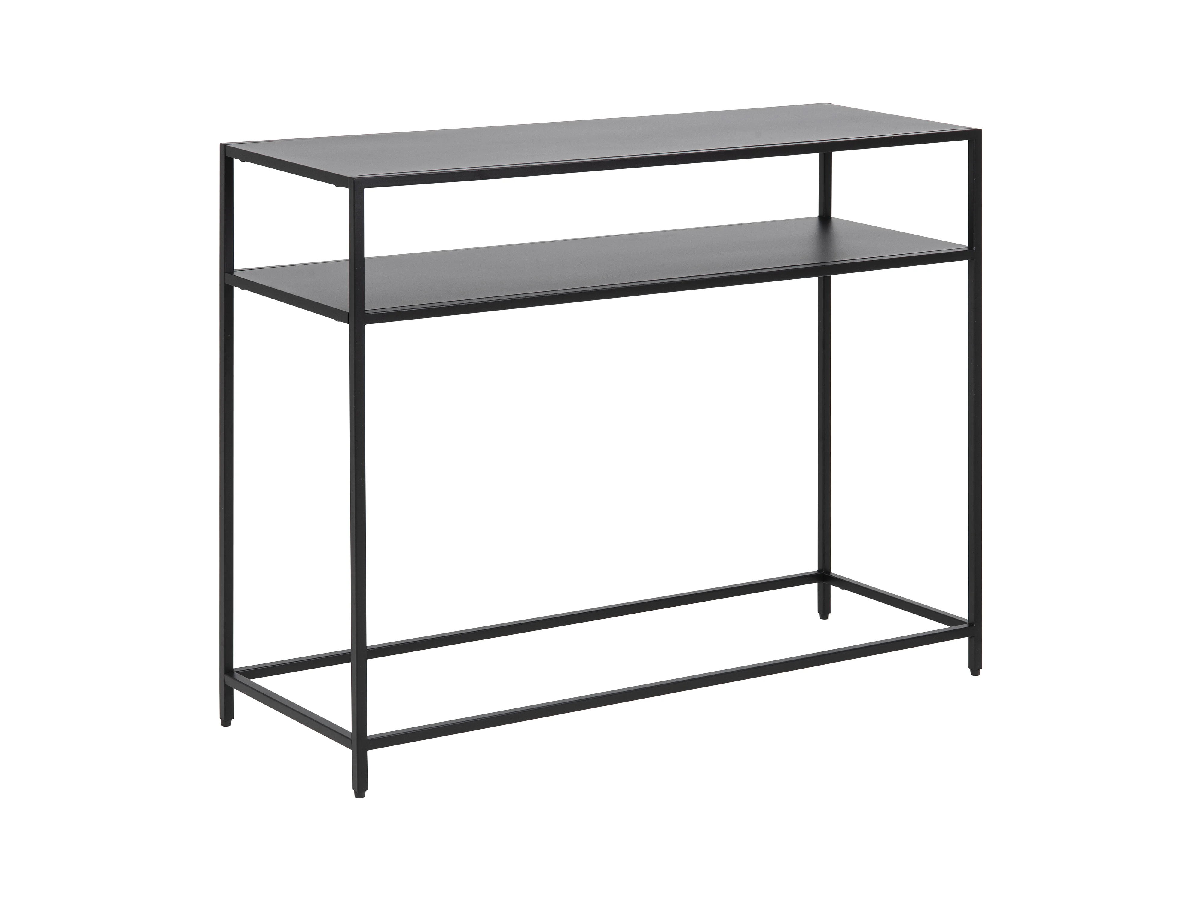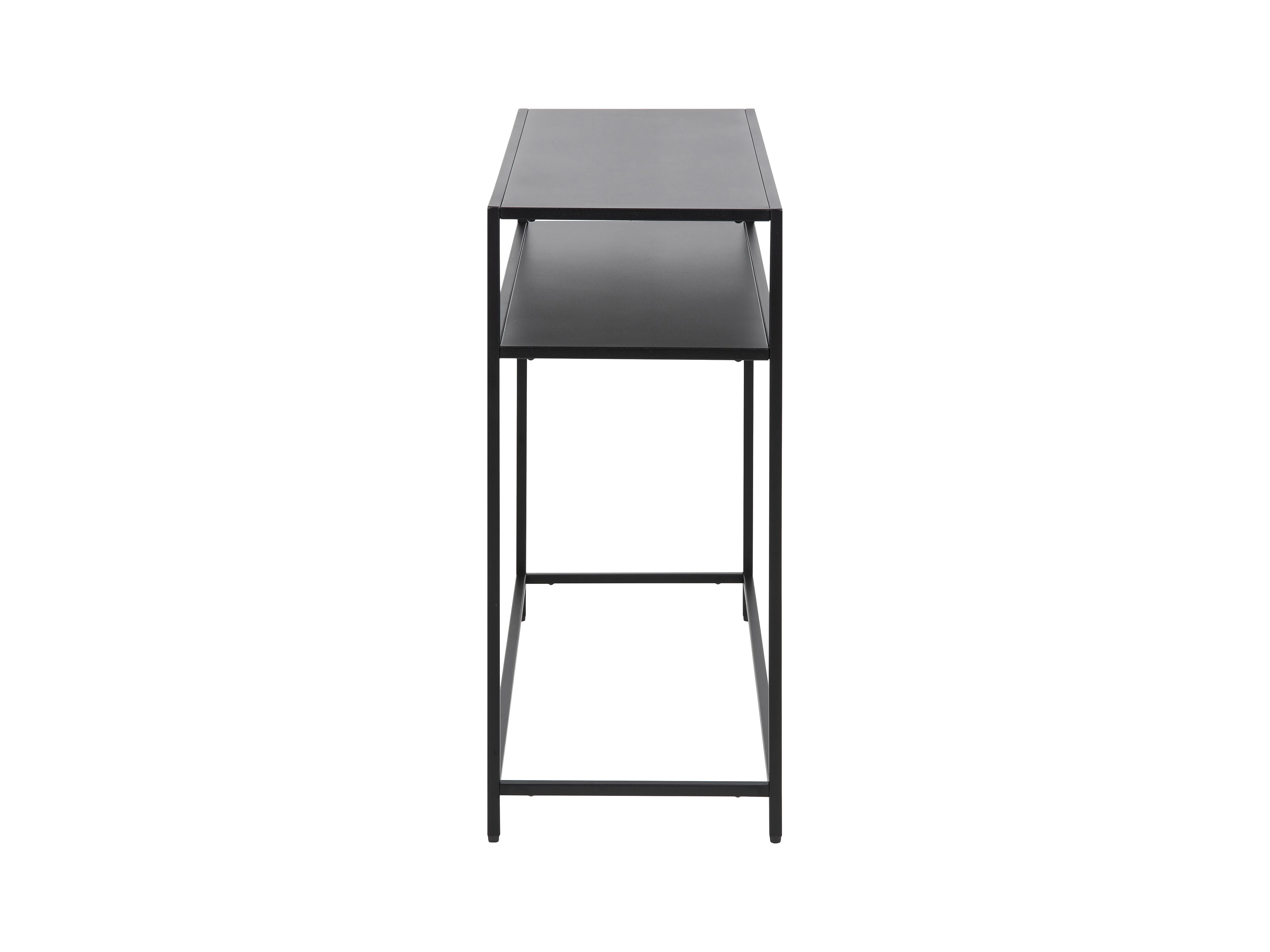 Mesa consola de metal negro con tablero de cristal y estante de madera maciza 100 cm HAORA