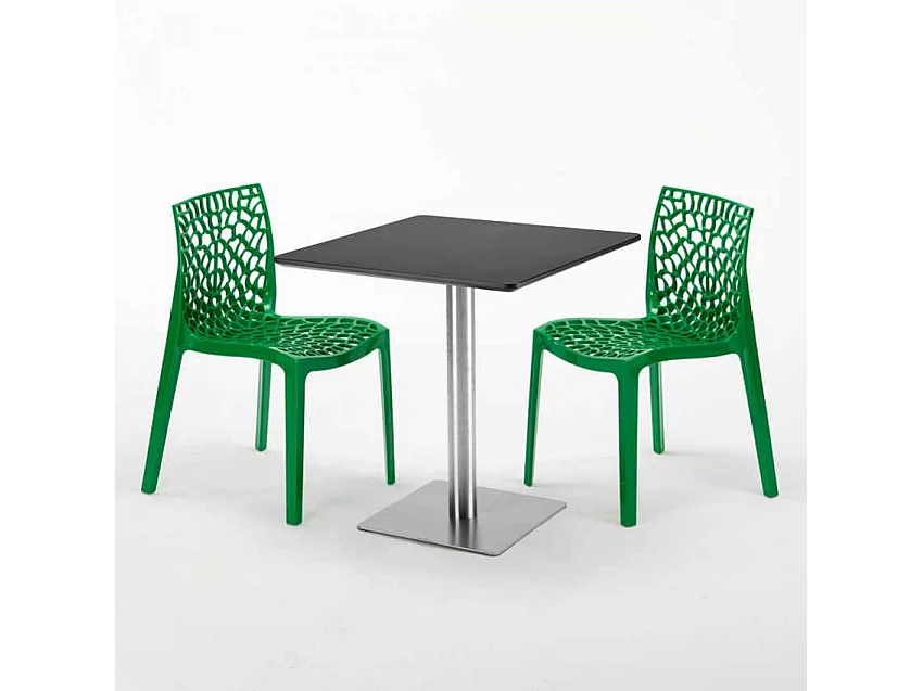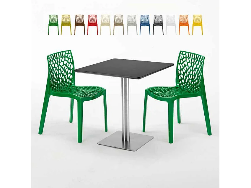 Mesa Cuadrada Negra 70x70 cm y 2 Sillas De Colores Gruvyer Rum Raisin