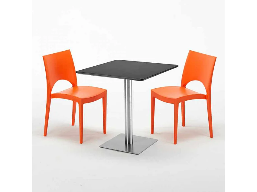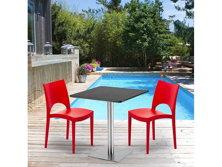 Mesa Cuadrada Negra 70x70 cm y 2 Sillas De Colores Paris Rum Raisin