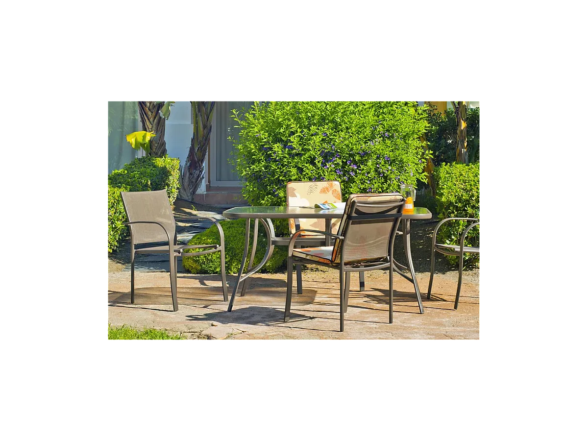 Mesa de acero Macao-150 acabado color bronce, (ancho-fondo-alto): 150x90x75 cm..