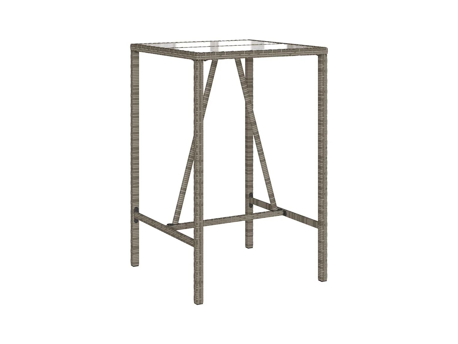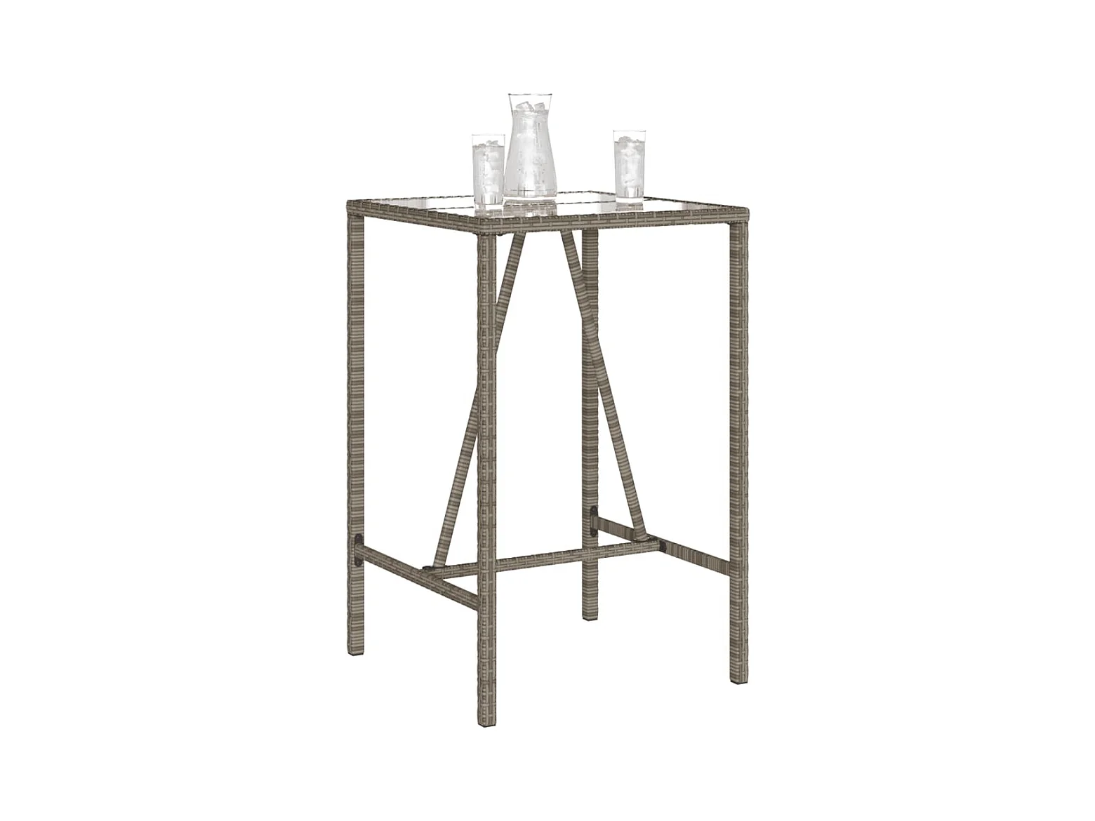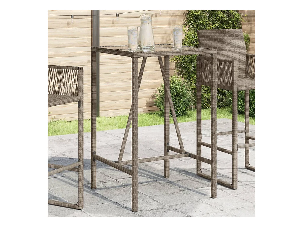 Mesa alta de jardín ratán sintético y vidrio gris 70x70x110 cm