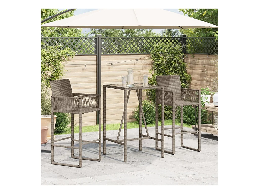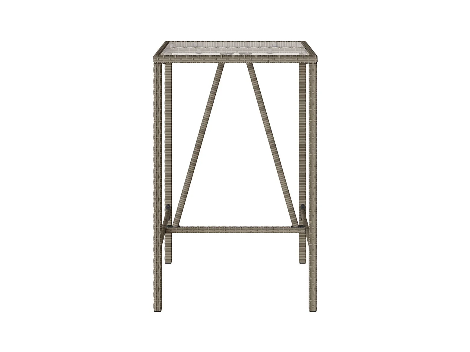 Mesa alta bar con superficie vidrio ratán PE gris 180x70x110 cm