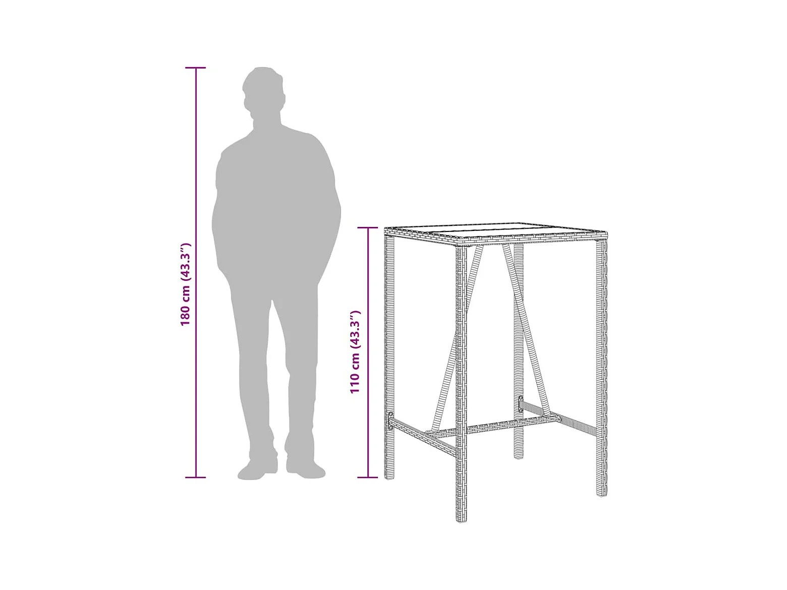 Mesa alta de jardín ratán sintético y vidrio gris 130x60x110cm