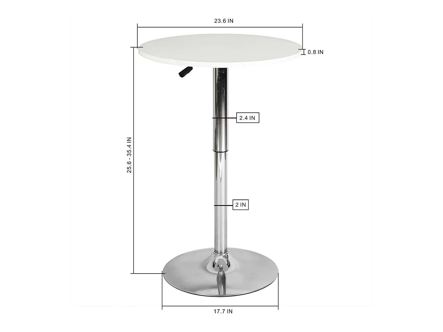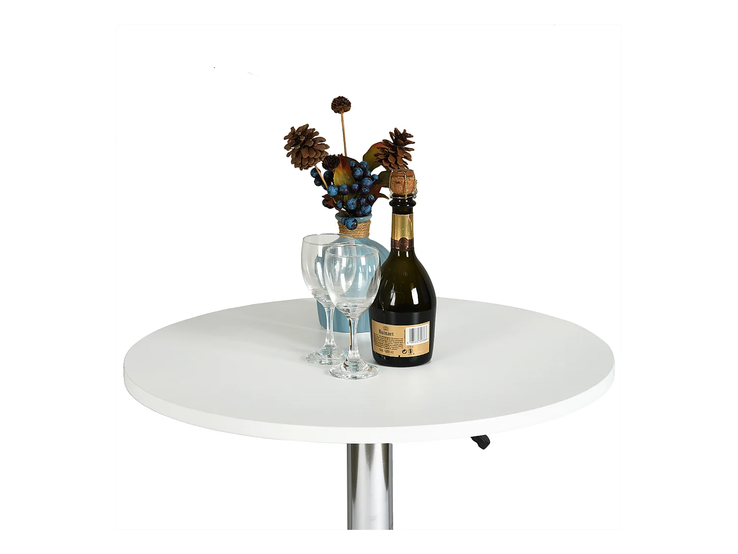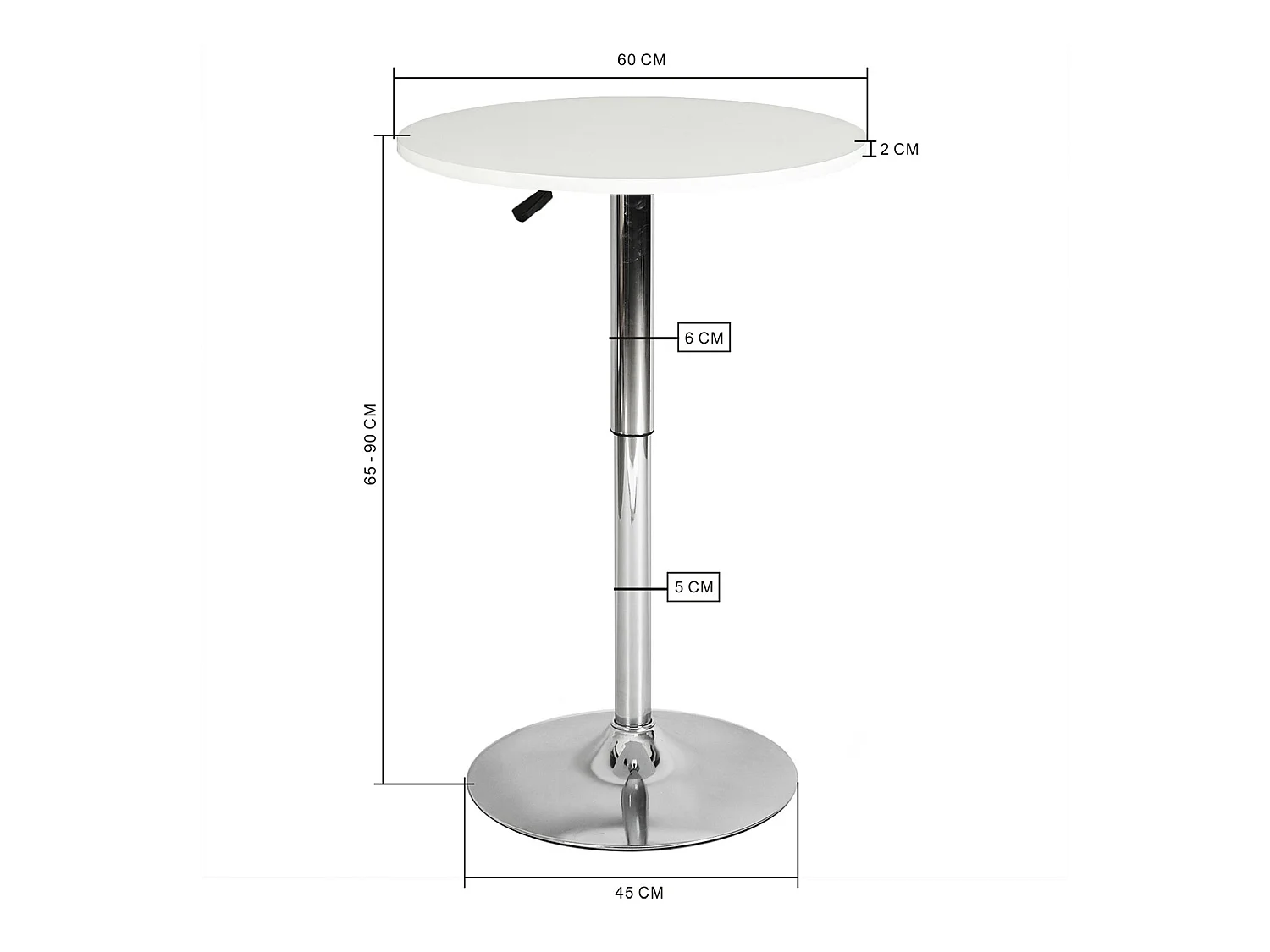 Mesa de bar redonda blanca de altura ajustable con base cromada de 60-90 cm