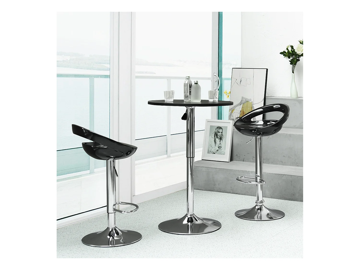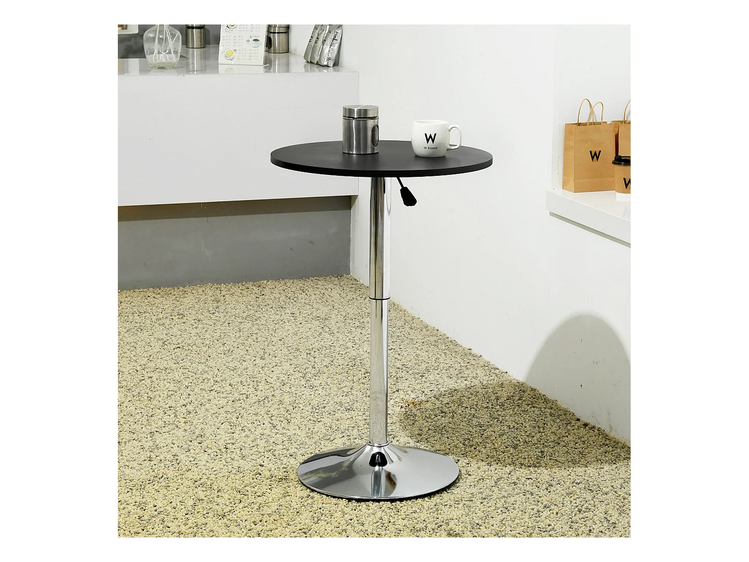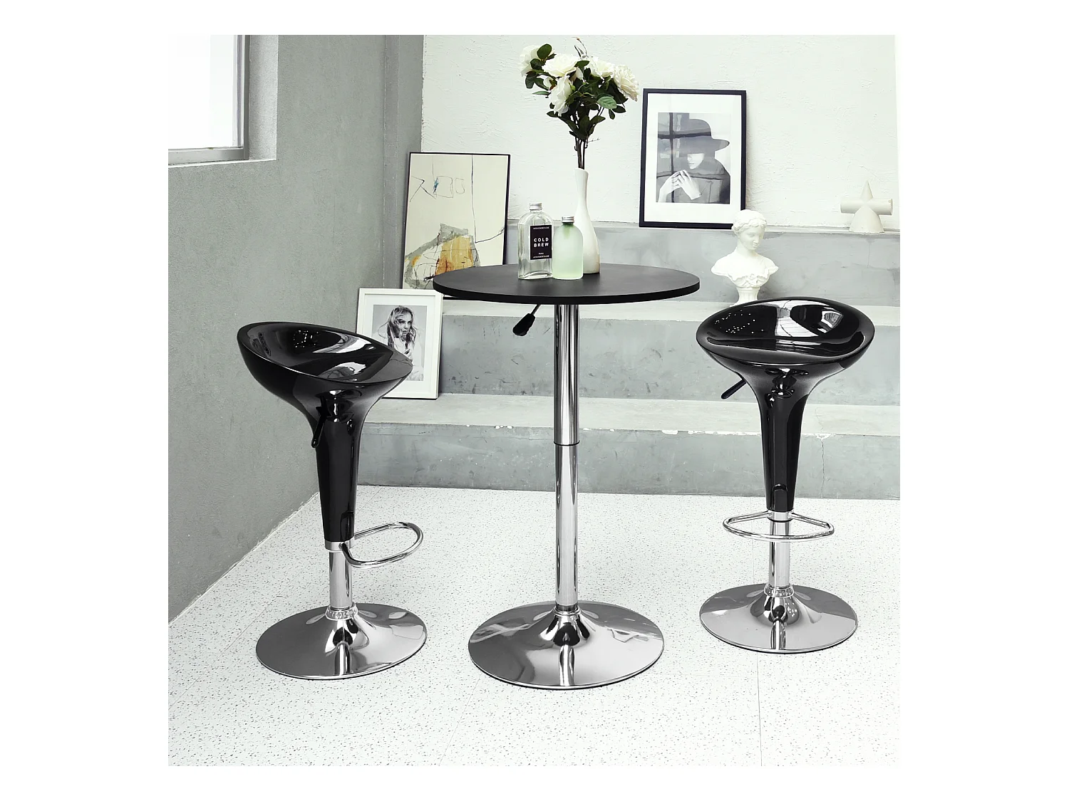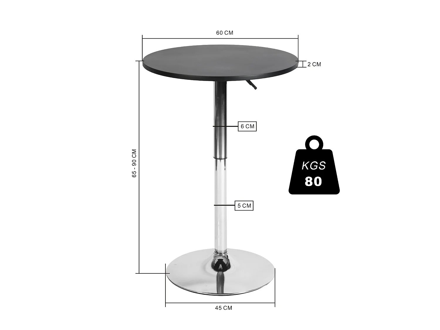 Mesa de bar redonda blanca de altura ajustable con base cromada de 60-90 cm