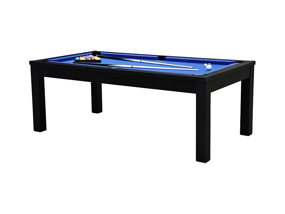 Mesa de billar convertible negra con alfombra azul - Eddie