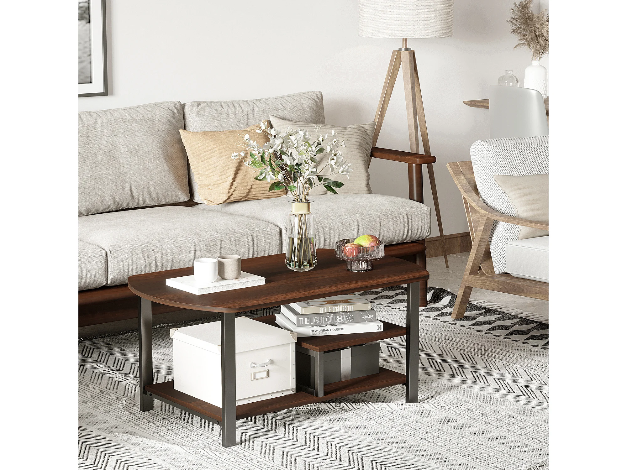 Mesa de Centro Kemi 2 Niveles Negro Nogal 52x36 cm