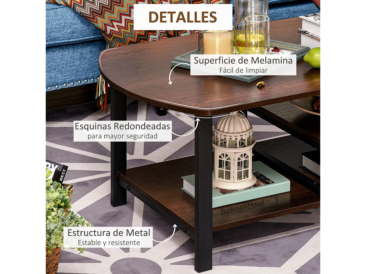 Mesa de café marrón rústico 100x60x46 cm HOMCOM