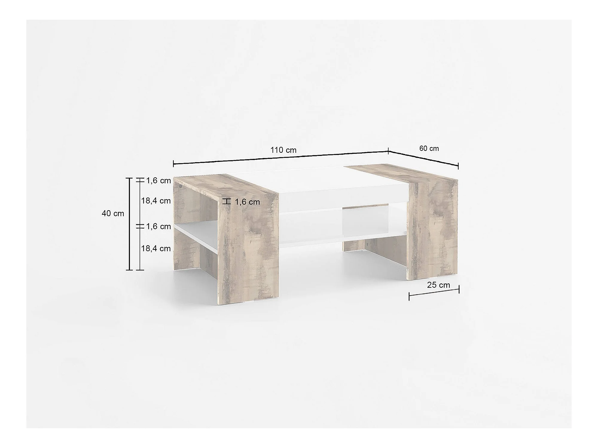 Mesa de café Dfort, Mesita baja, Revistero, 100% Made in Italy, cm 110x60h40, Blanco brillo y Arce