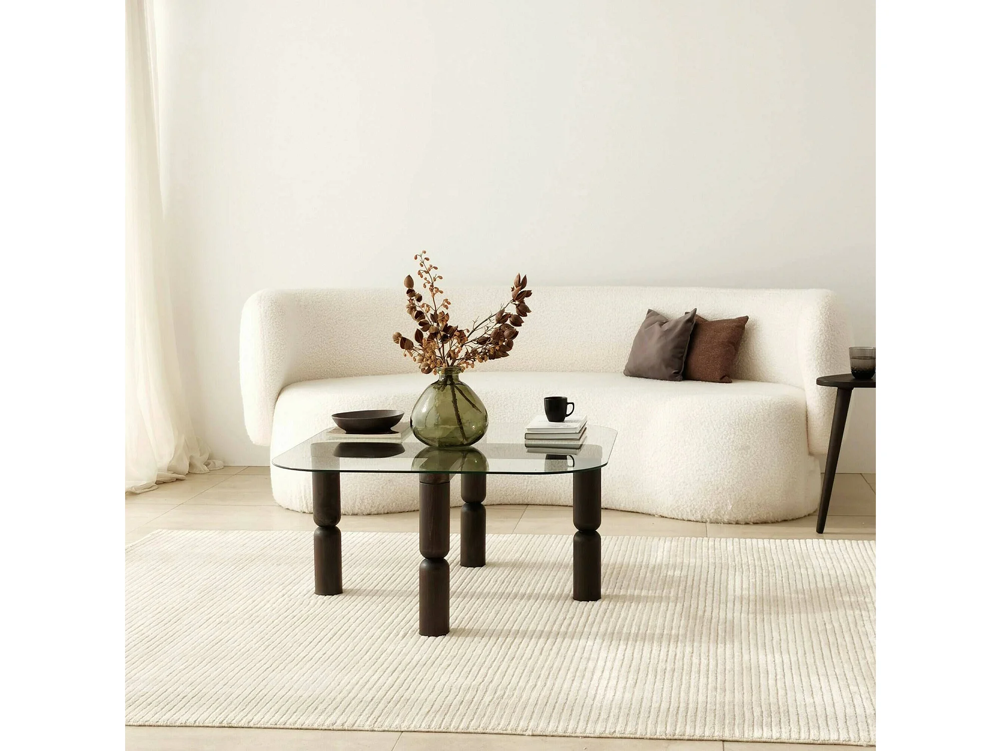 Mesa de café Dpervers, Mesa de centro baja, Revistero para sofá, Estante de la sala de estar, 80x80h40 cm, Antracita y Transparente