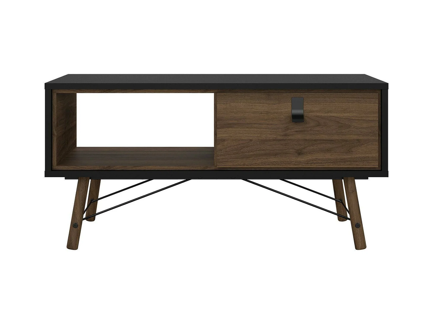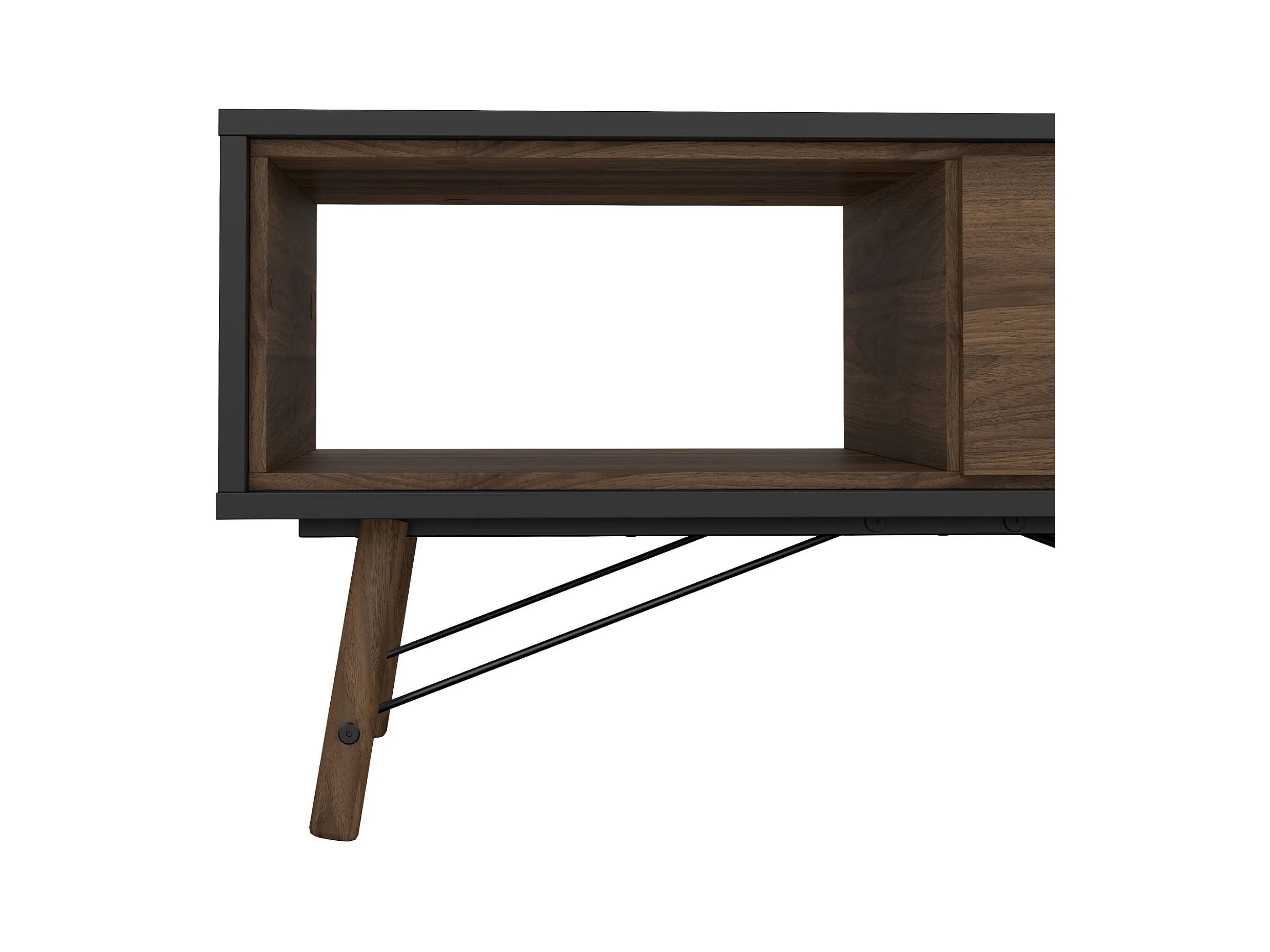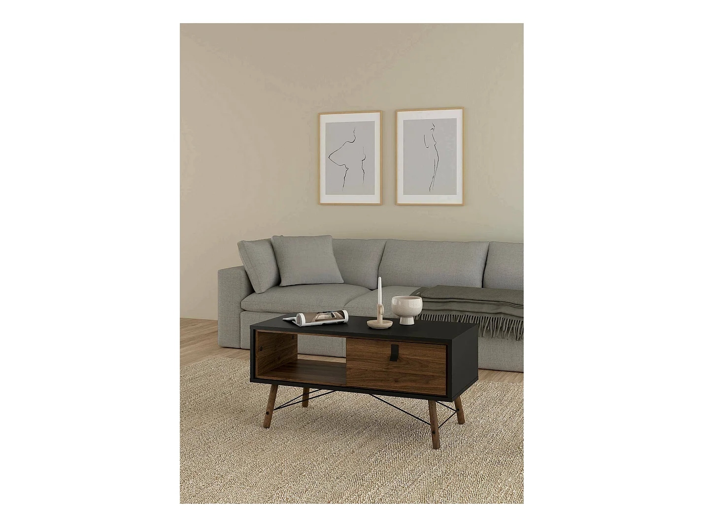 Mesa de café Dvalot, Mesa de centro baja, Revistero para sofá, Estante de la sala de estar, 102x48 h50 cm, Negro y Nogal