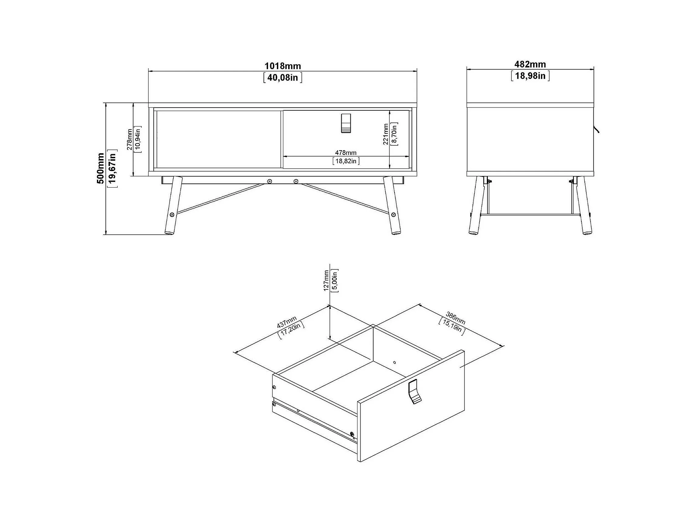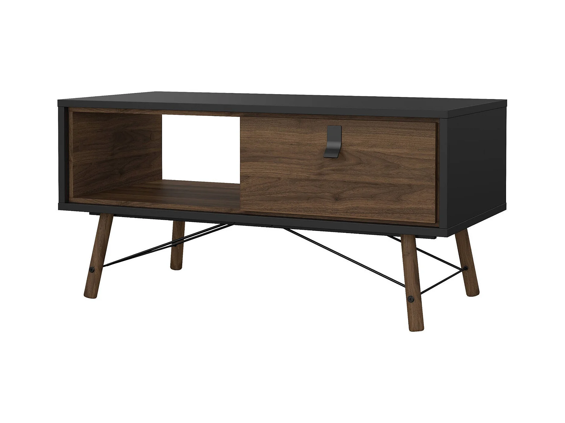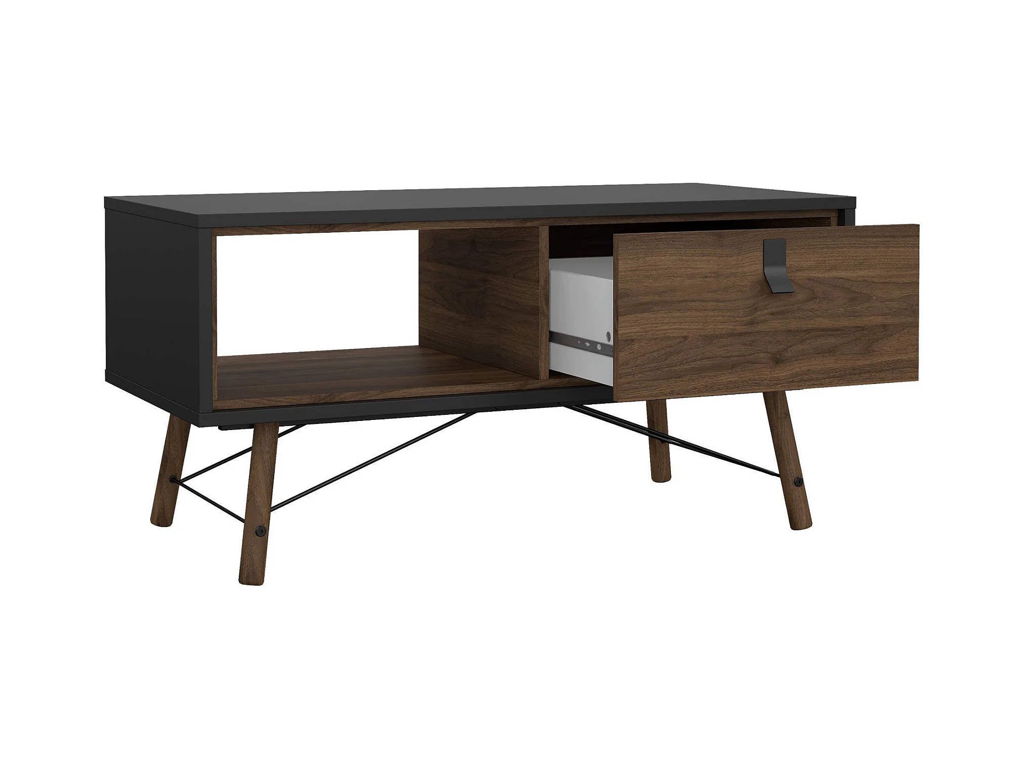 Mesa de café Dvalot, Mesa de centro baja, Revistero para sofá, Estante de la sala de estar, 102x48 h50 cm, Negro y Nogal