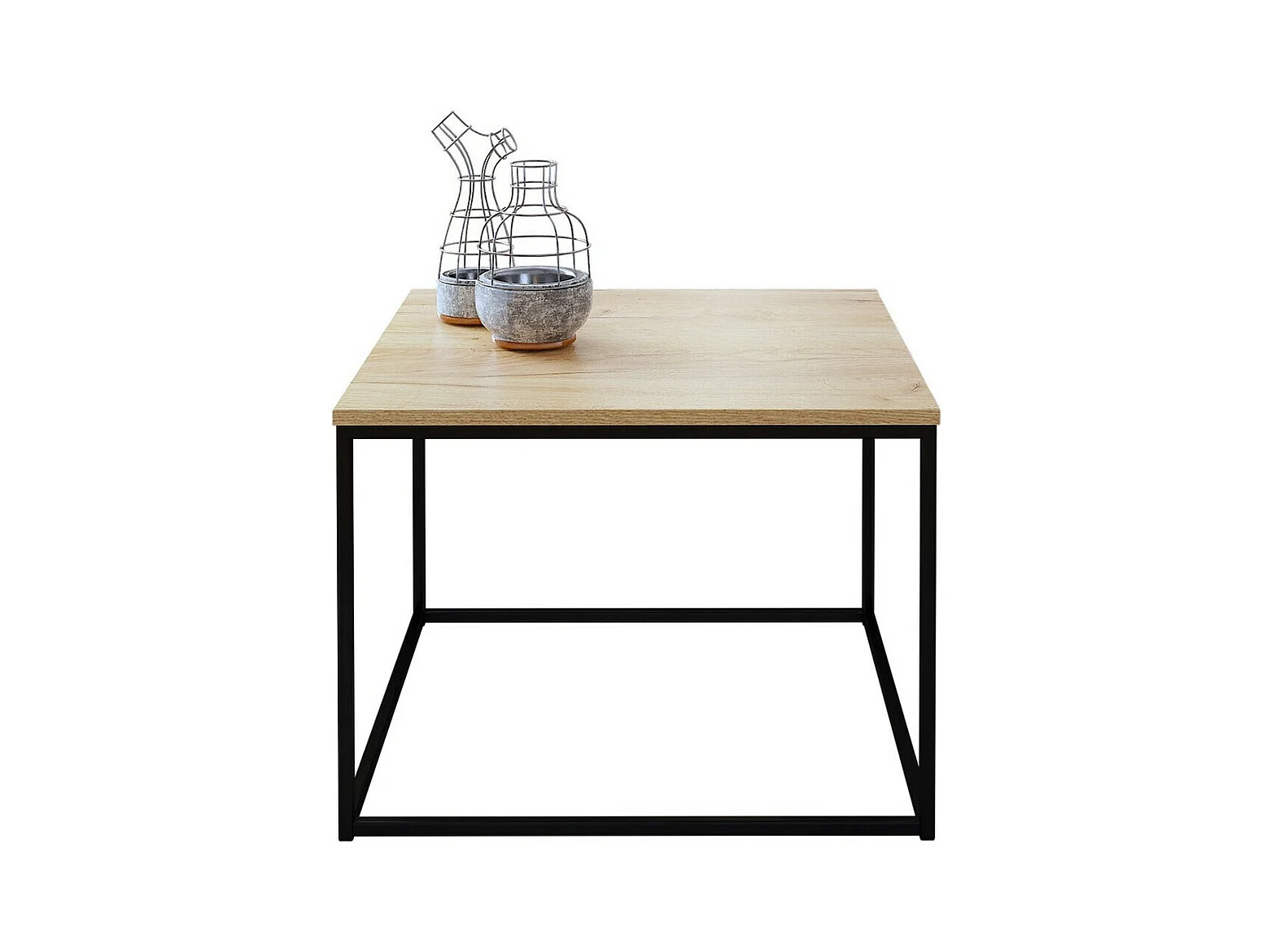 Mesa de café Germantown 105, Negro mate|Roble, 44x60x60cm, Aglomerado laminado, Angular