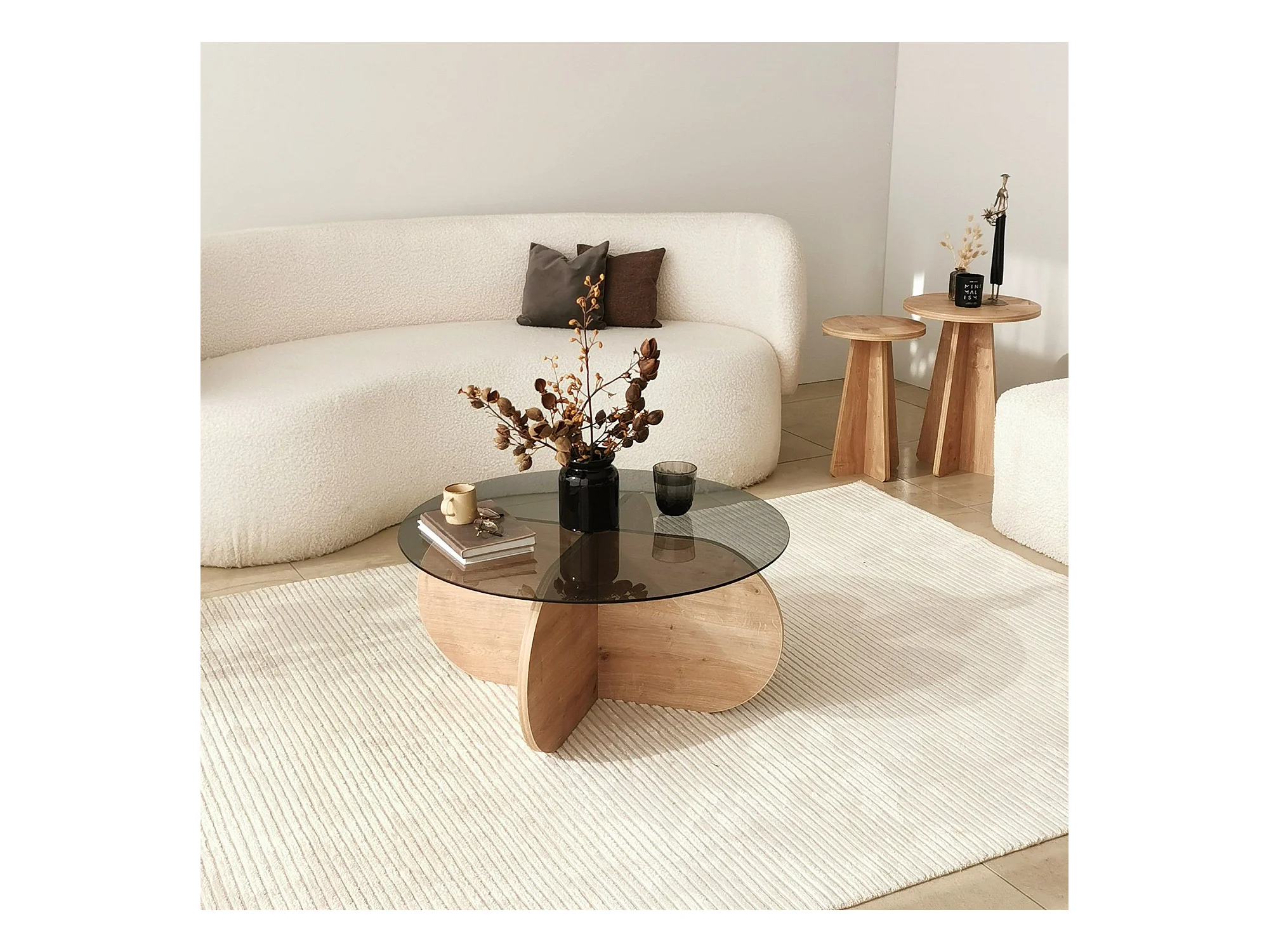 Mesa baja de madera efecto piedra y tablero de vidrio RIBE