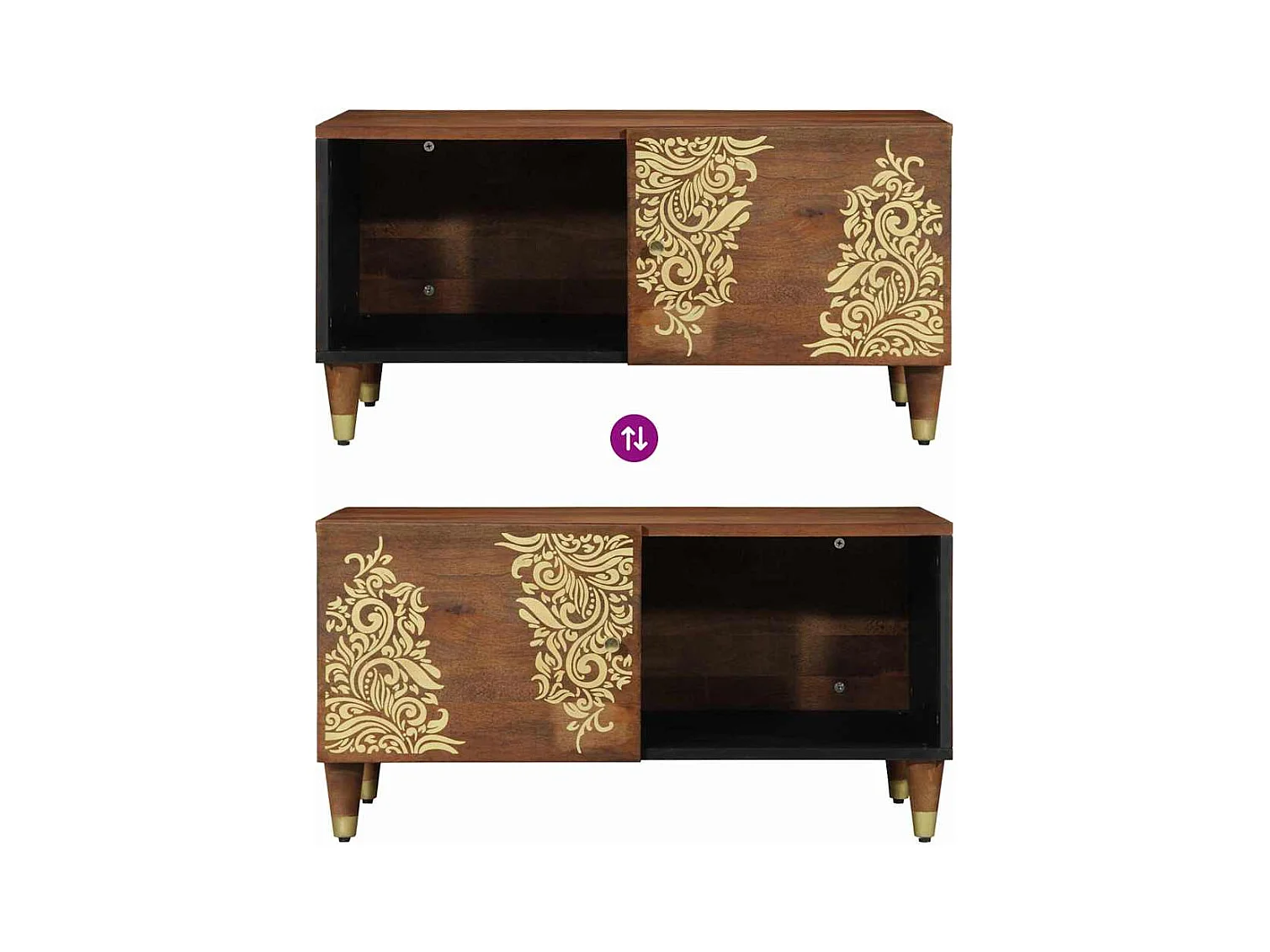 Mesa de centro madera maciza mango y contrachapada 80x50x40 cm