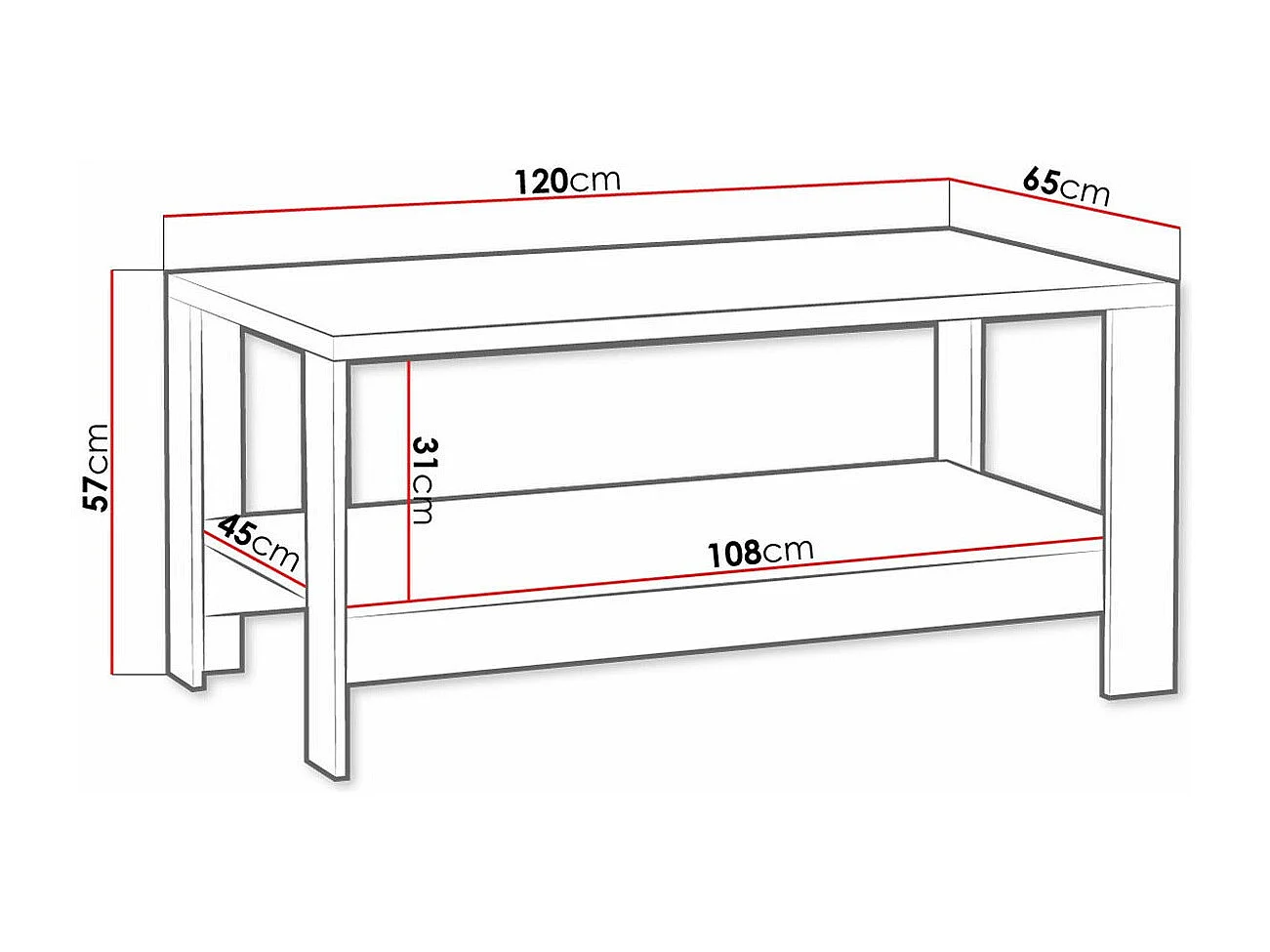 Mesa de café Stanton F118, Luminoso madera, 57x65x120cm, Aglomerado laminado, Angular