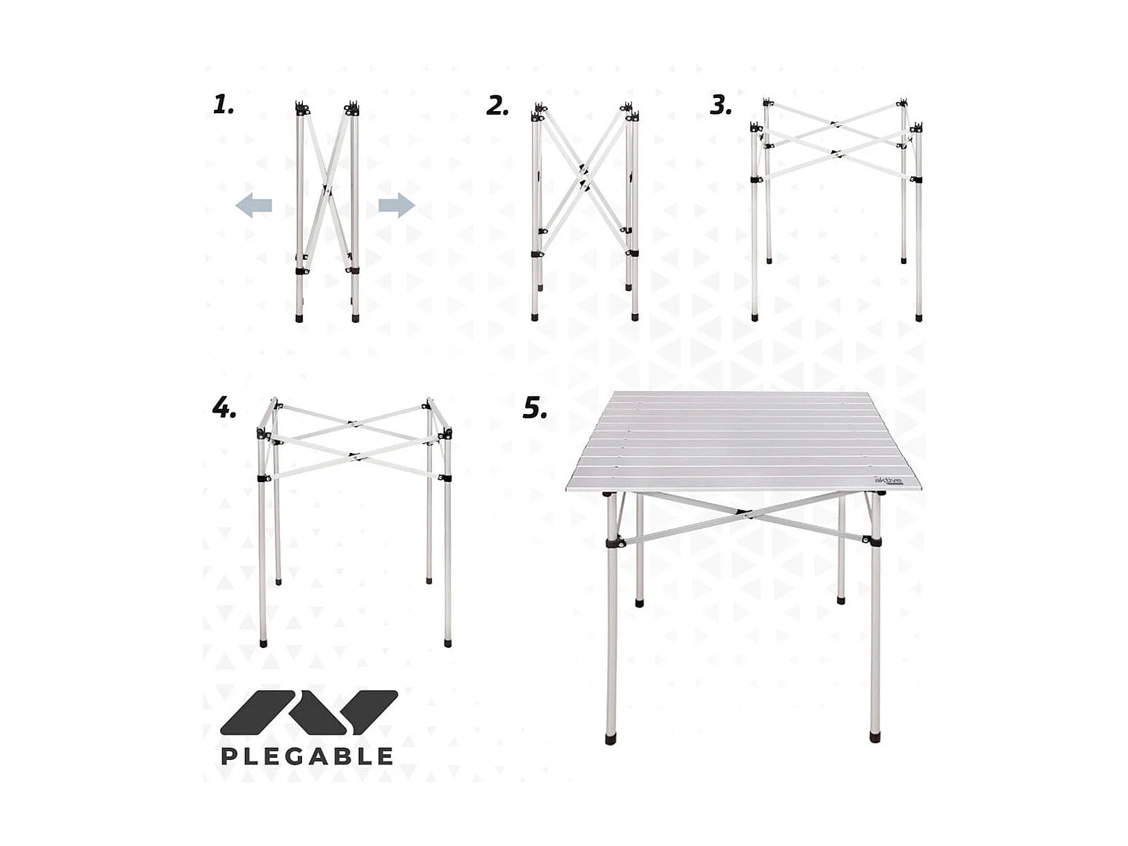 Mesa de camping Aktive diseño desmontable plateado 72x108x71 cm
