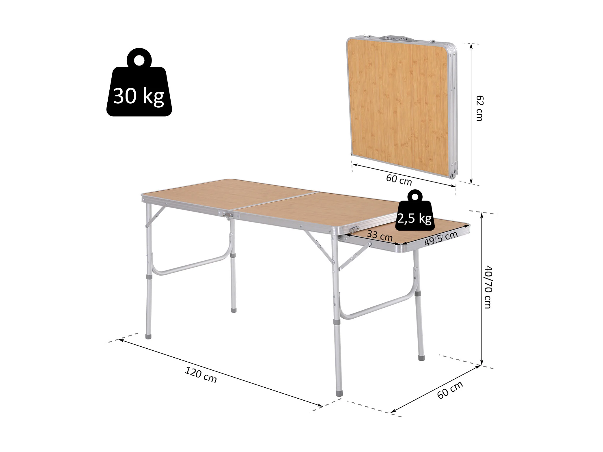 Mesa de camping natural bambú color 153x60x70 cm Outsunny