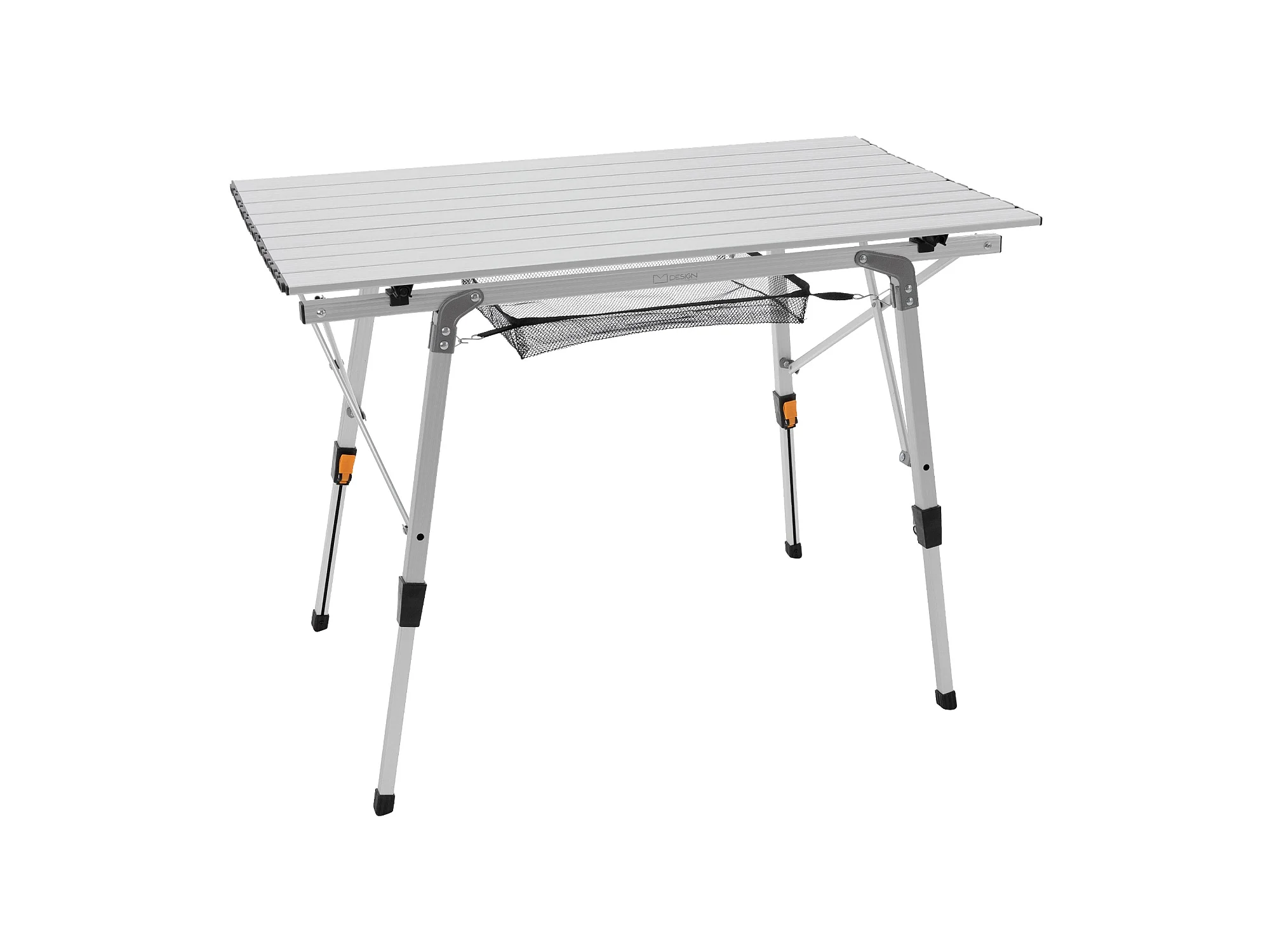 Mesa de Camping SucceBuy Plegable Enrollable 90x52 cm, Mesa Auxiliar Portátil de Aluminium, con Altura Ajustable, Capa de Malla y Bolsa de Transporte