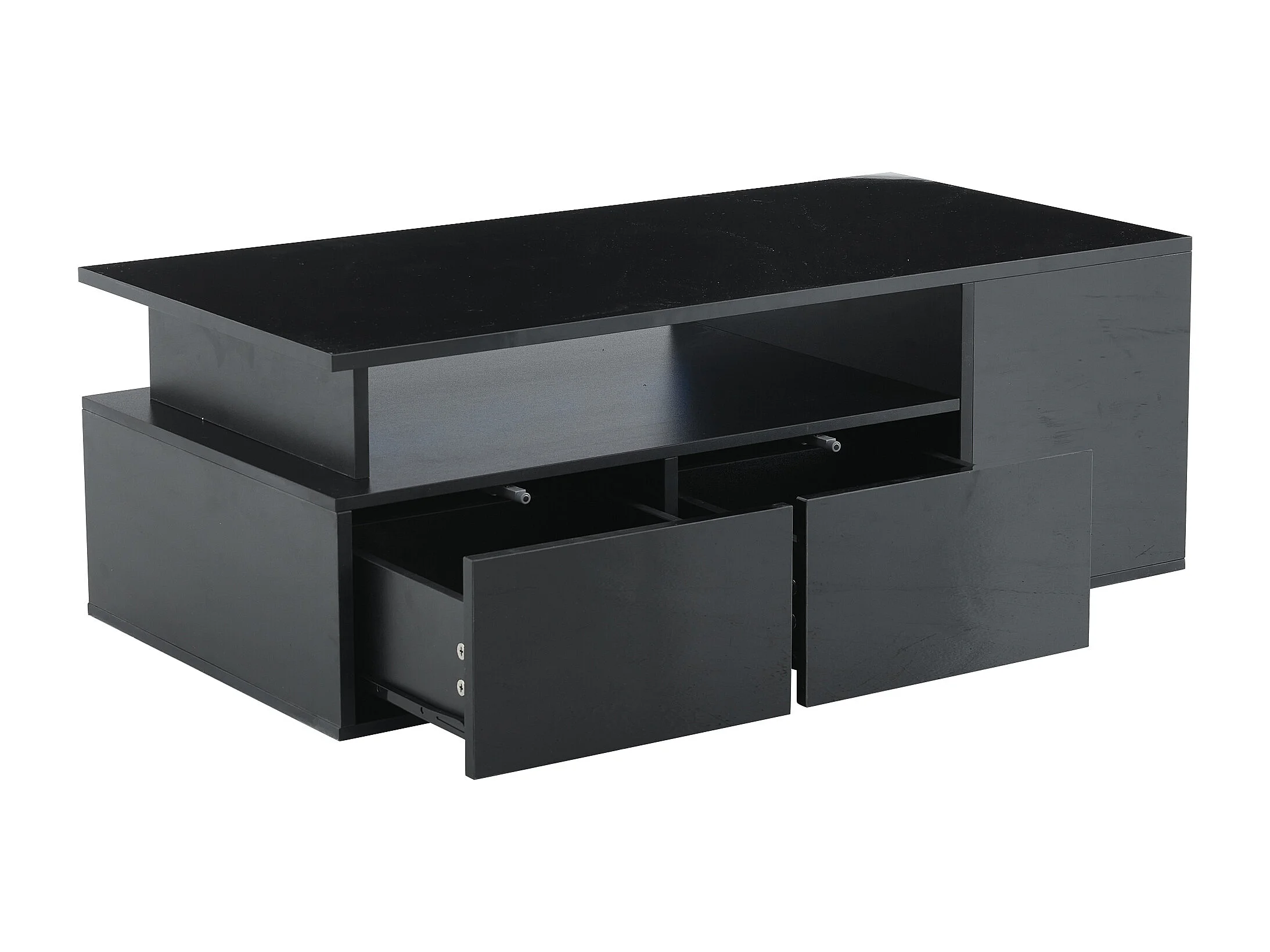 Mesa de centro - 100 x 50 x 35 cm - Mesa de centro para salón - Con LED + 2 cajones - Tablero de aglomerado - Negro