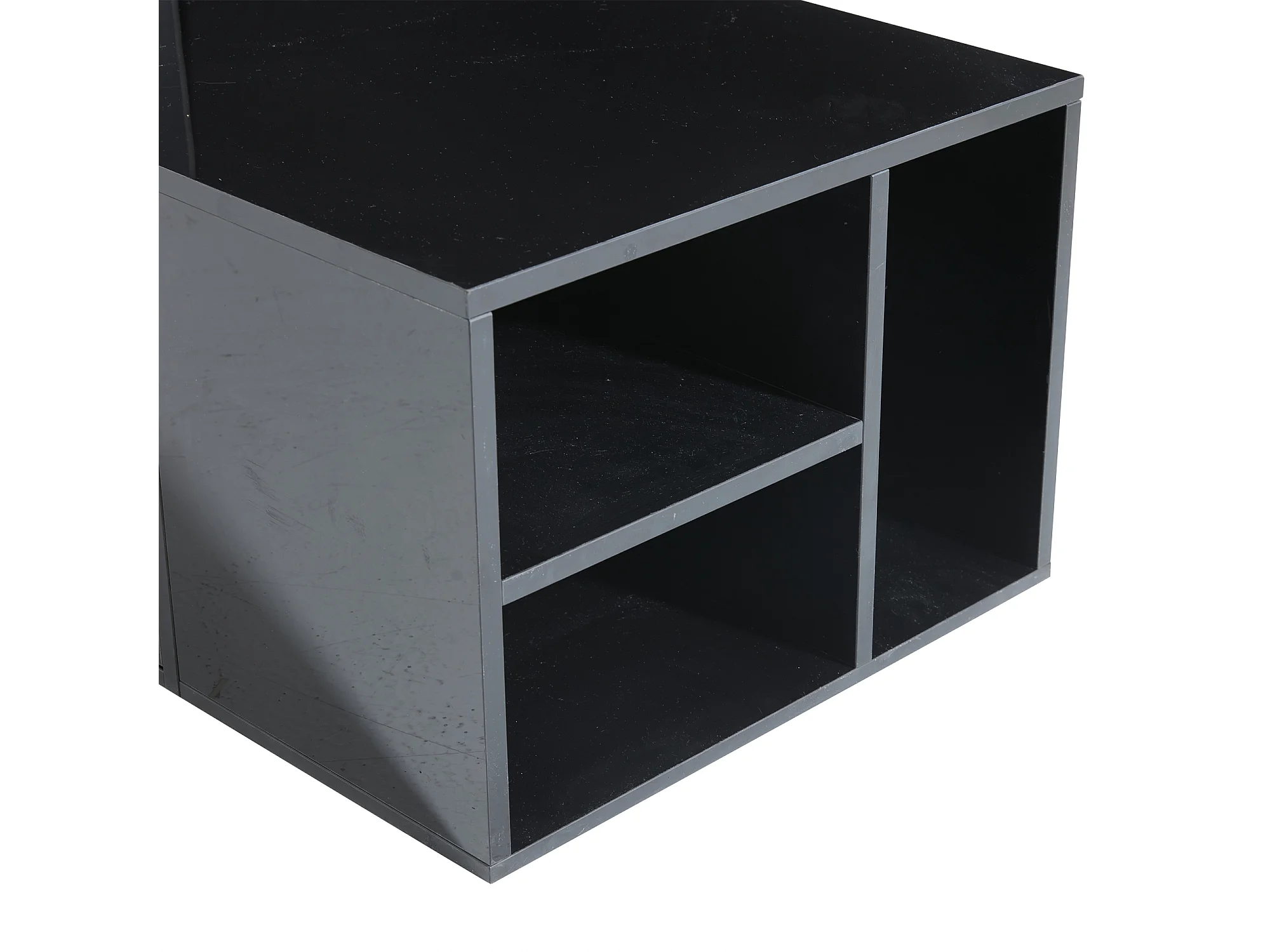 Mesa de centro negra con iluminación LED y almacenaje - Tapa brillante y panel central de cristal