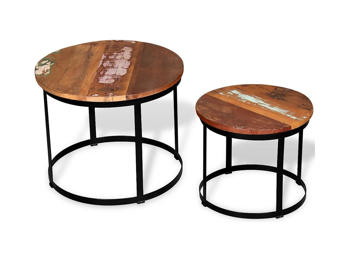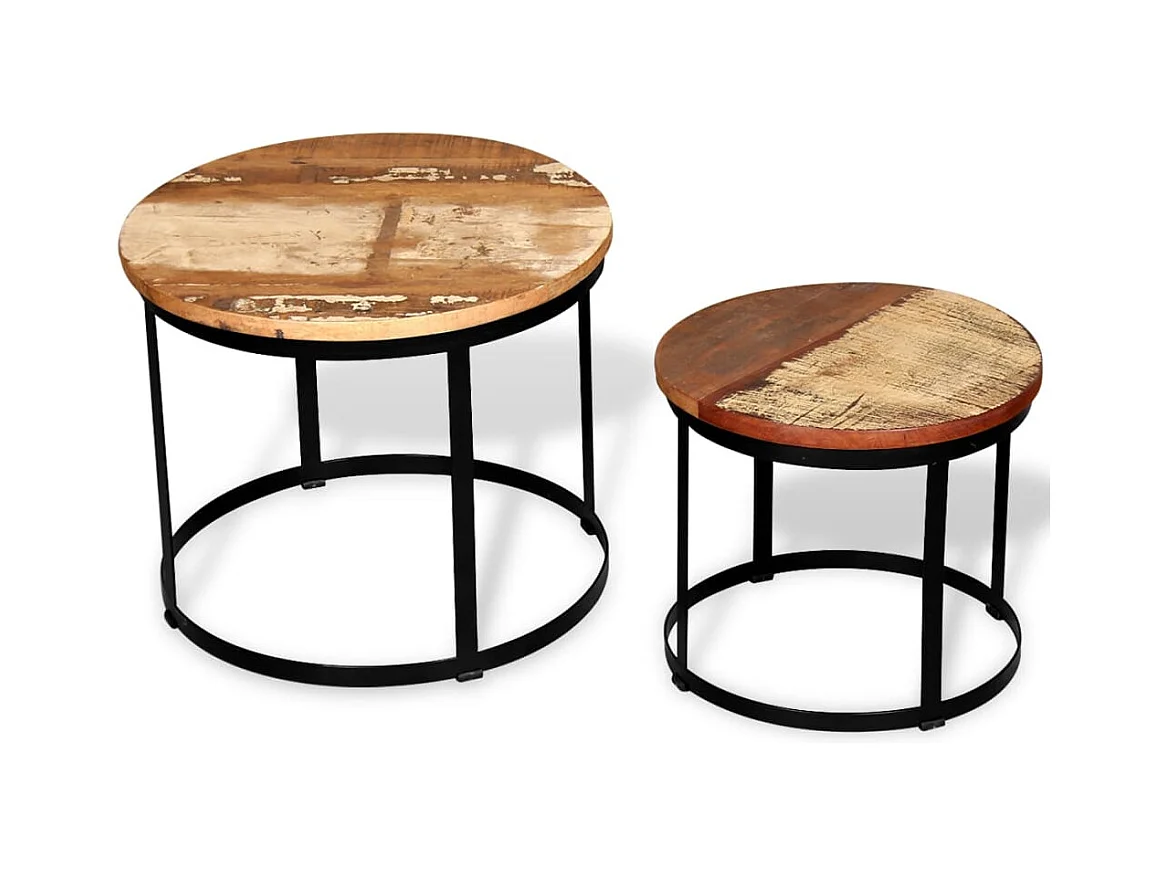 Mesa de centro 2 piezas Madera maciza recuperada Redonda 40 cm / 50 cm
