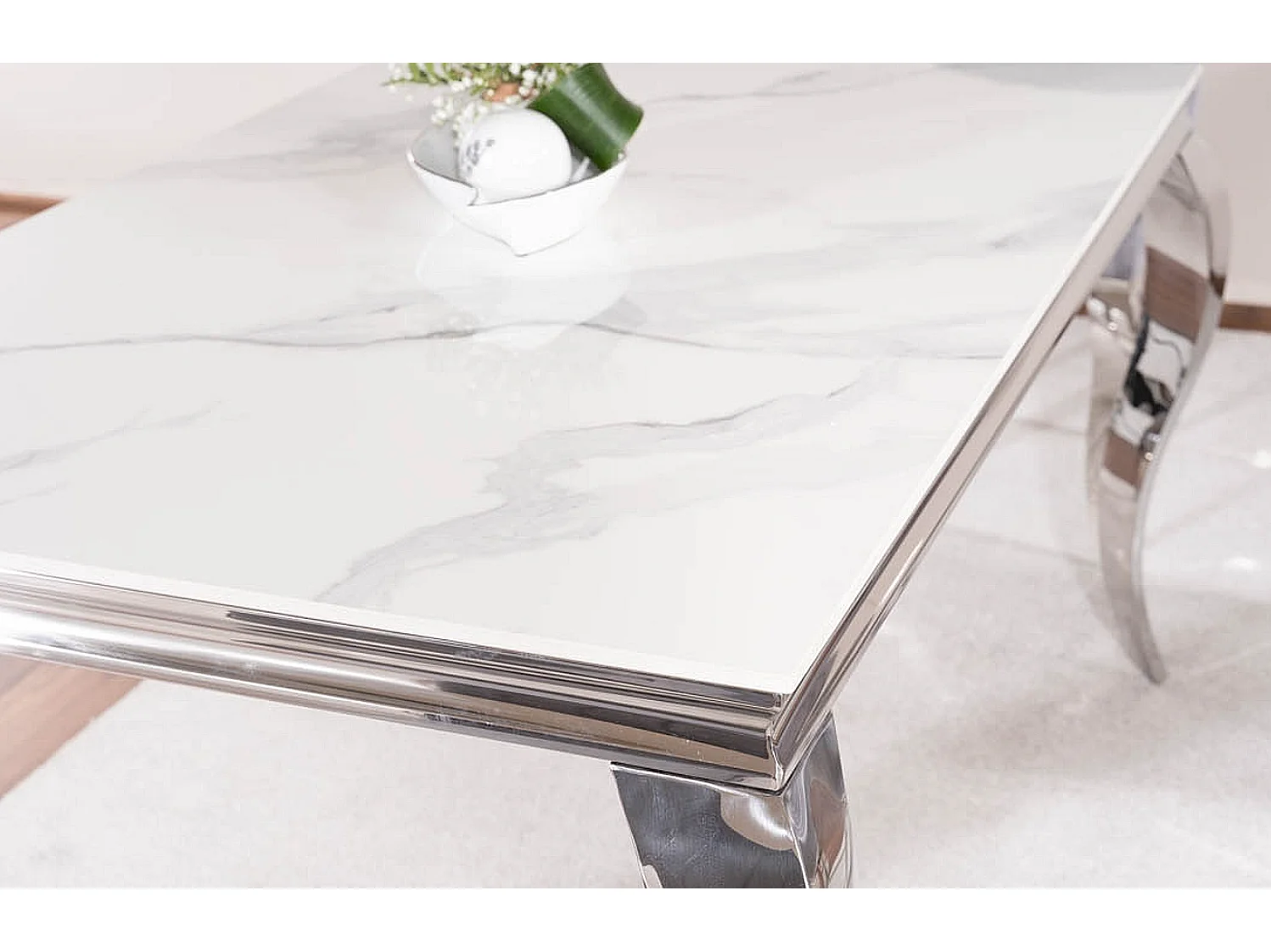 Mesa de centro barroca de metal y cerámica blanca 120cm Bolti