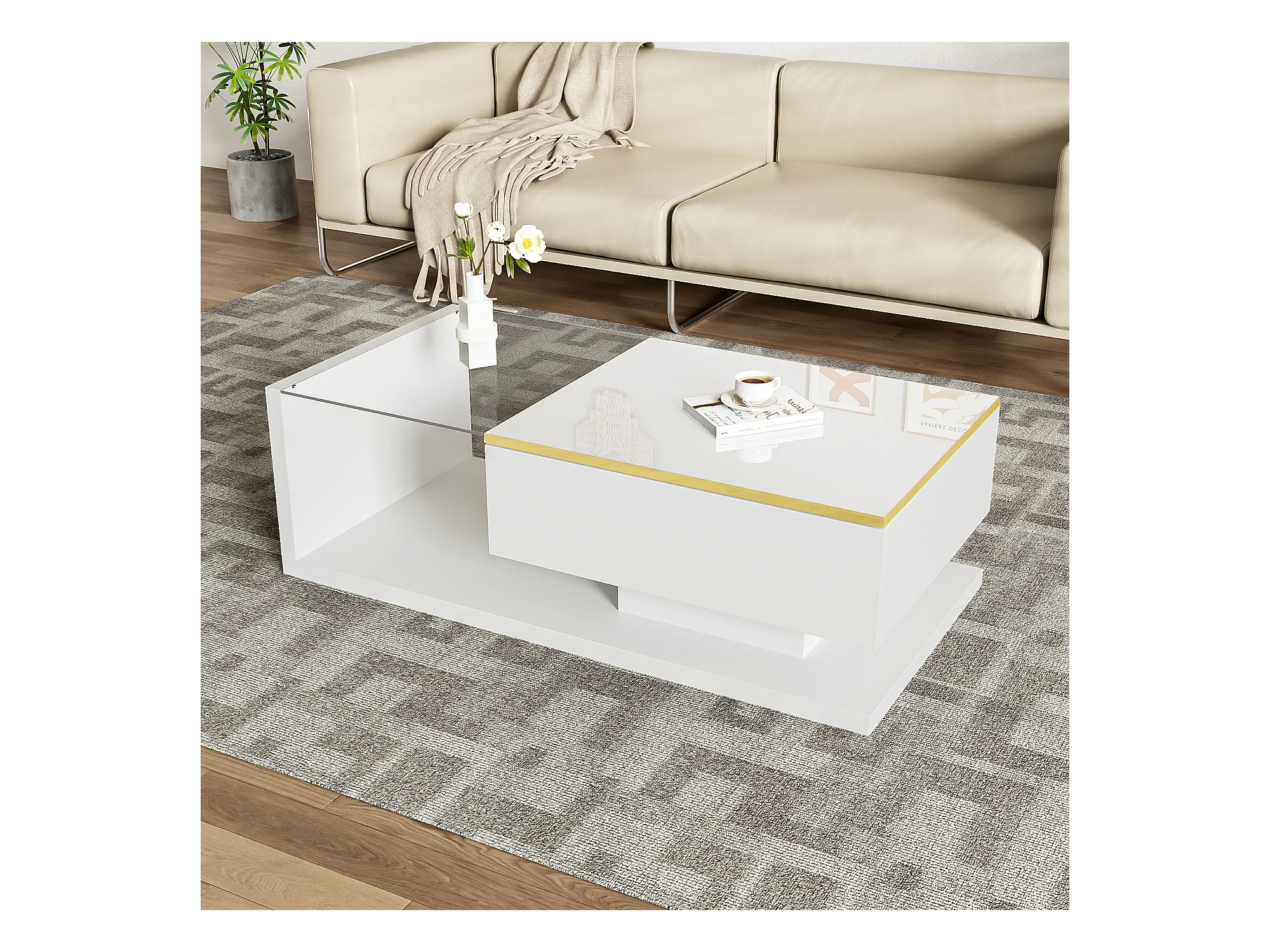 Mesa de centro blanca 100 cm - Mesa de centro con iluminación LED y separadores de espacio - espacio abierto - para sala de estar