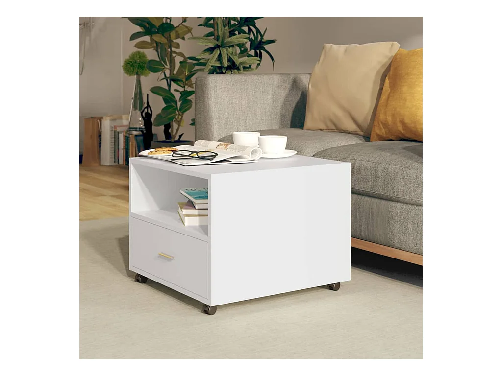 Mesa de centro blanca 80x55x40 cm madera de ingeniería