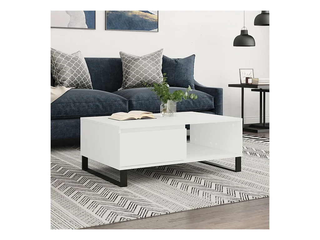 Mesa de centro blanca 90x60x35 cm madera de ingeniería