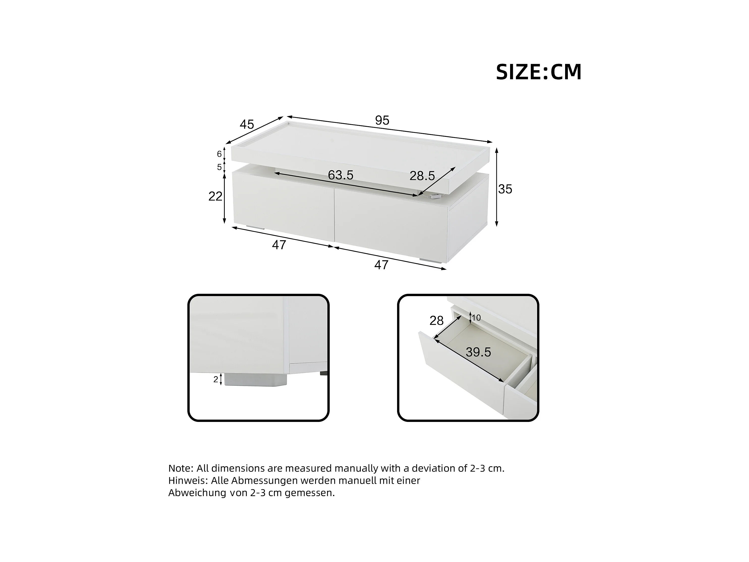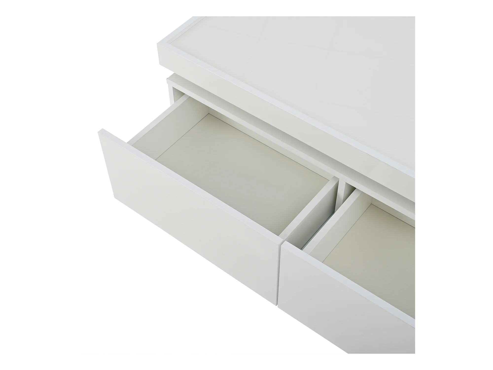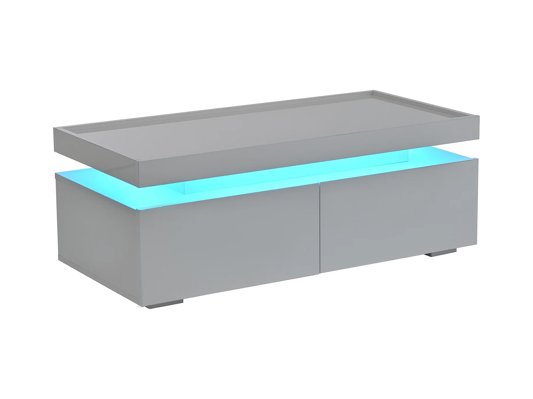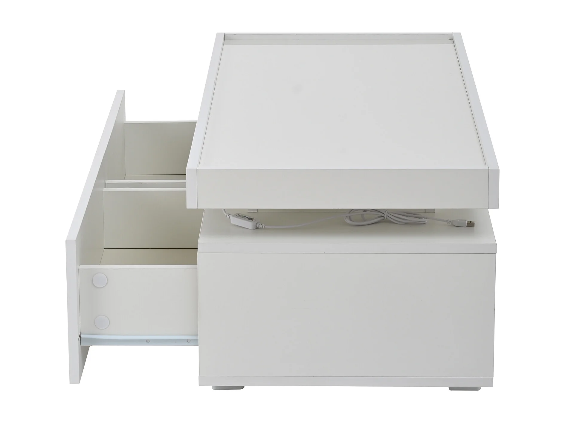 Mesa de centro blanca brillante con luz LED y 2 cajones de almacenamiento – Para salón