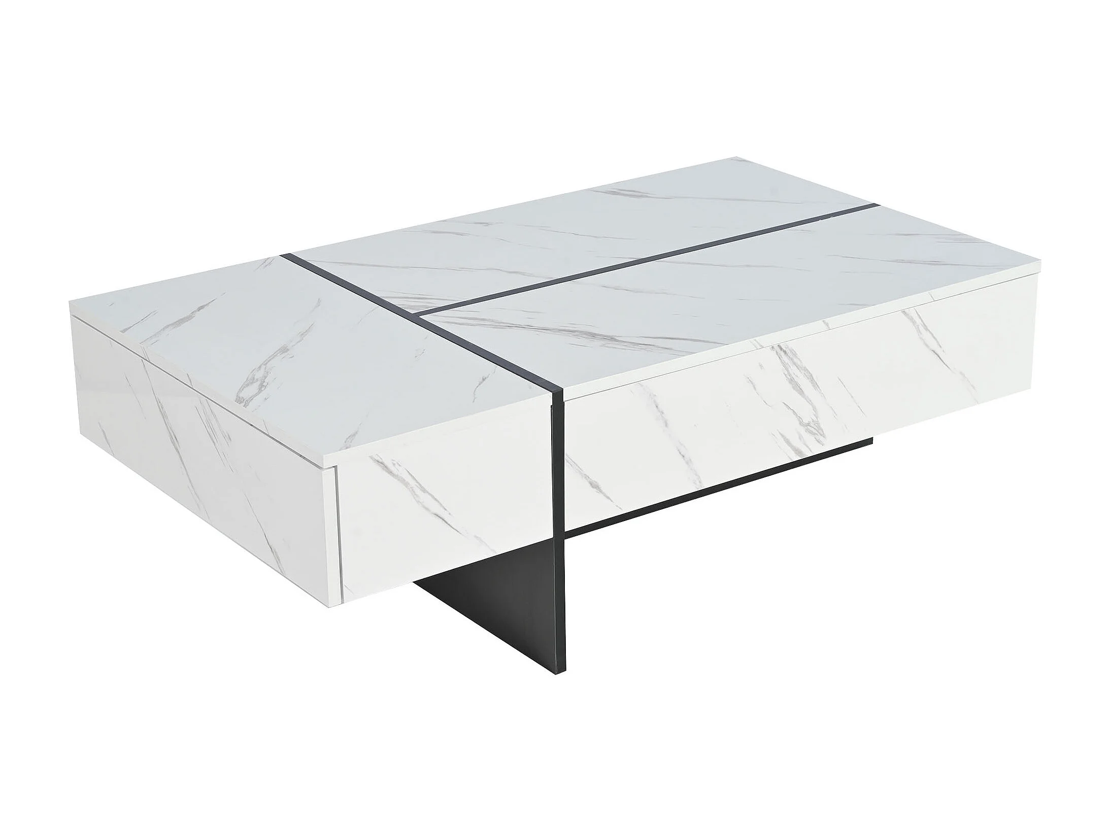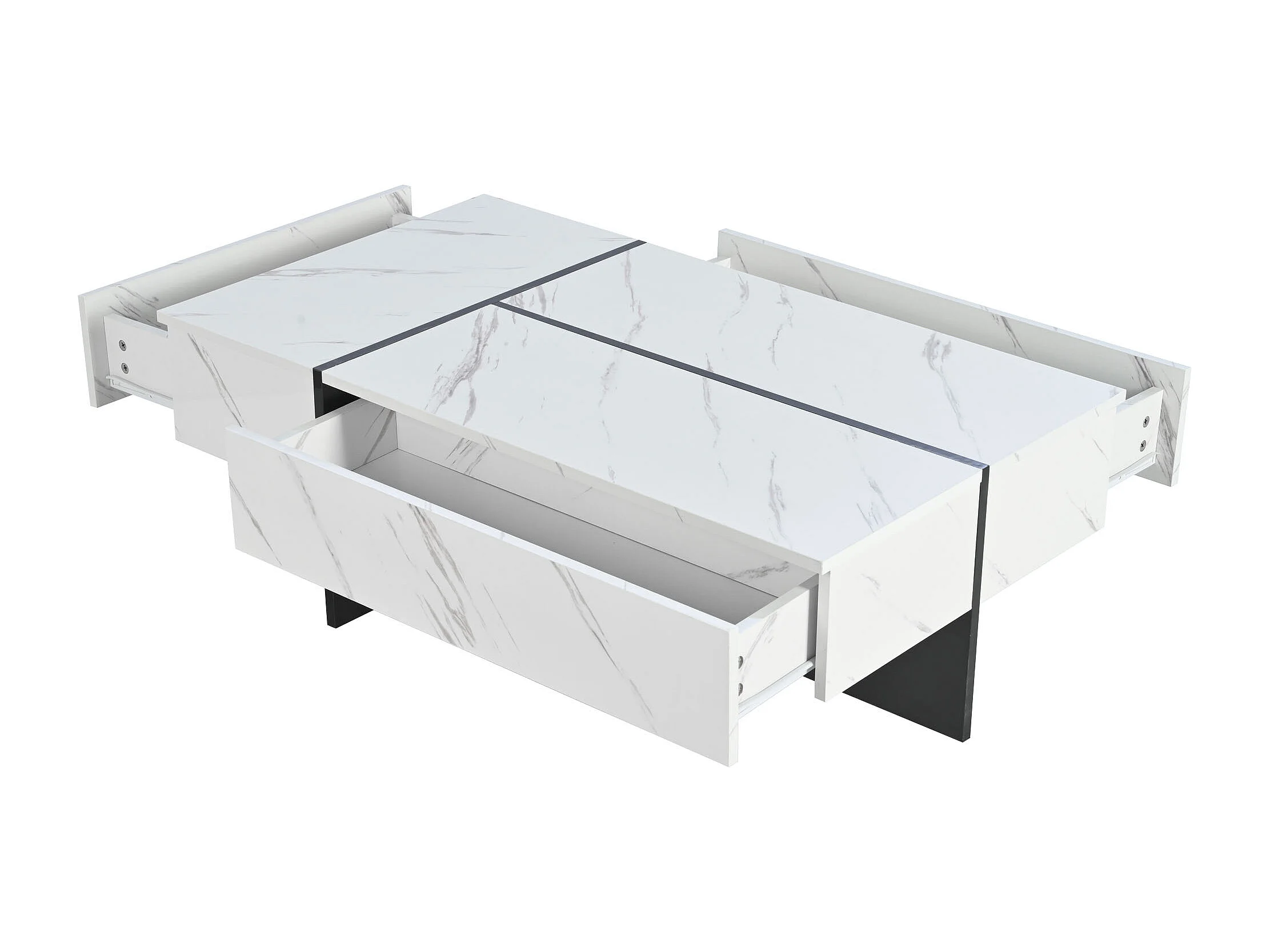 Mesa de centro blanca con iluminación LED y 3 cajones - efecto mármol - tapa acabado brillante