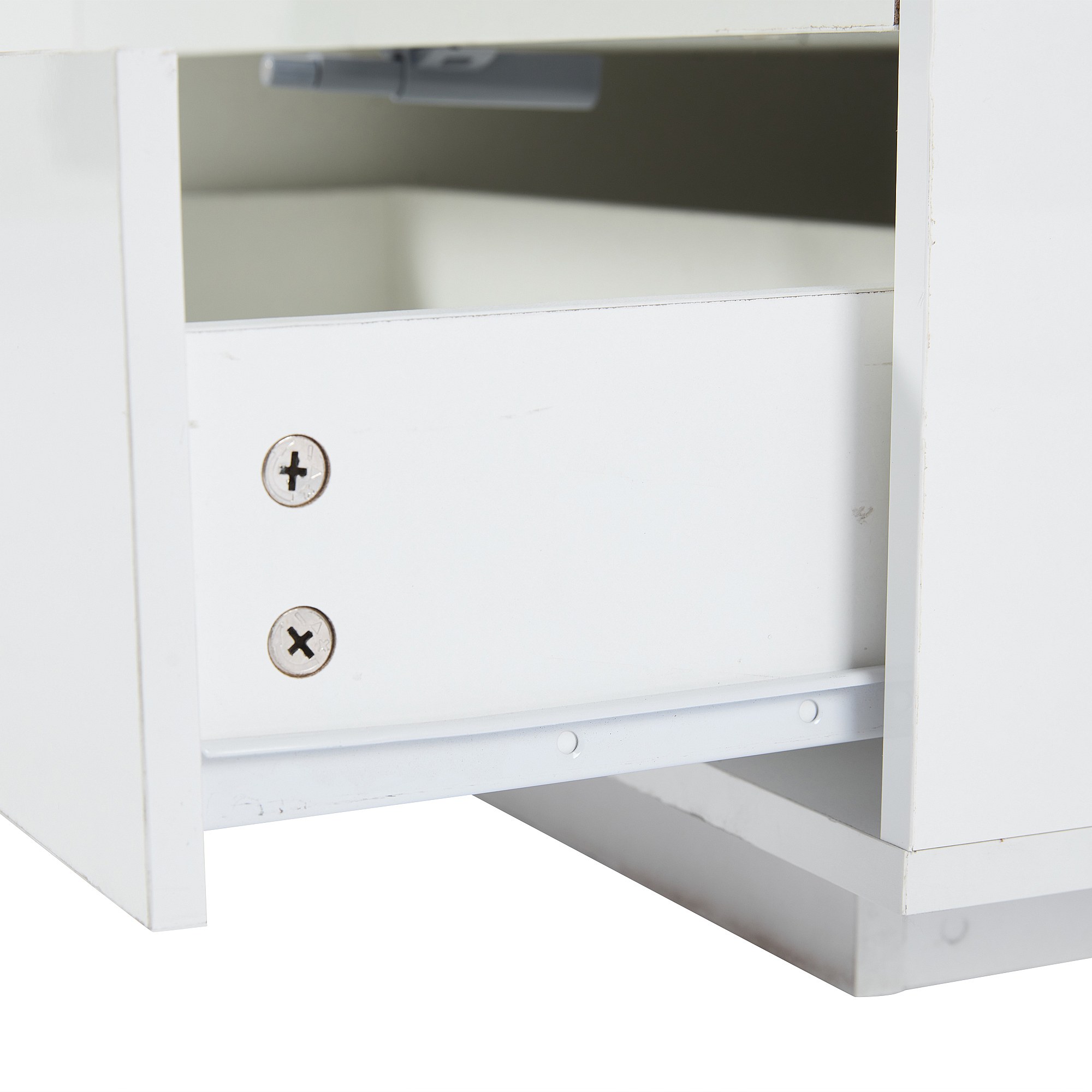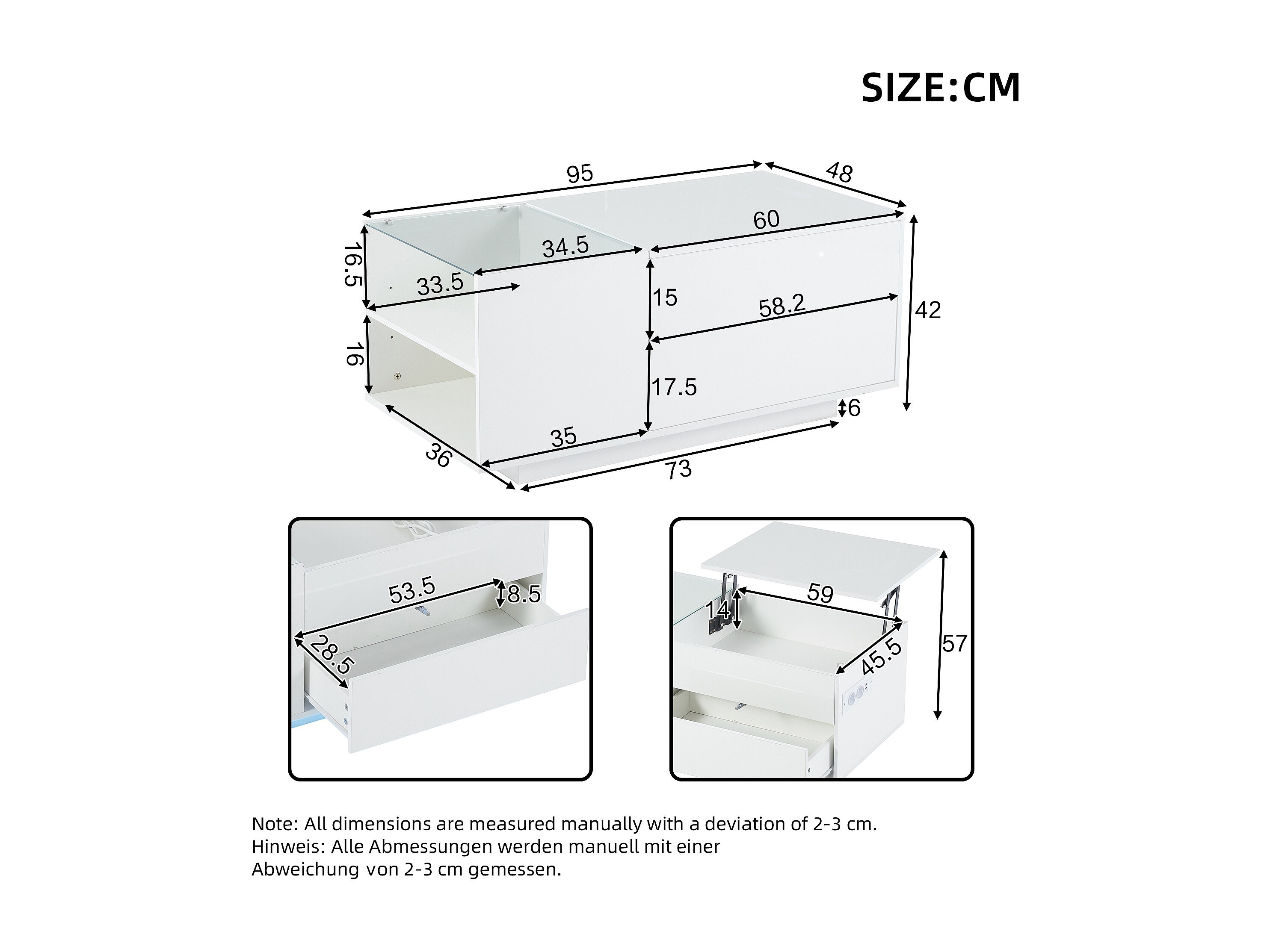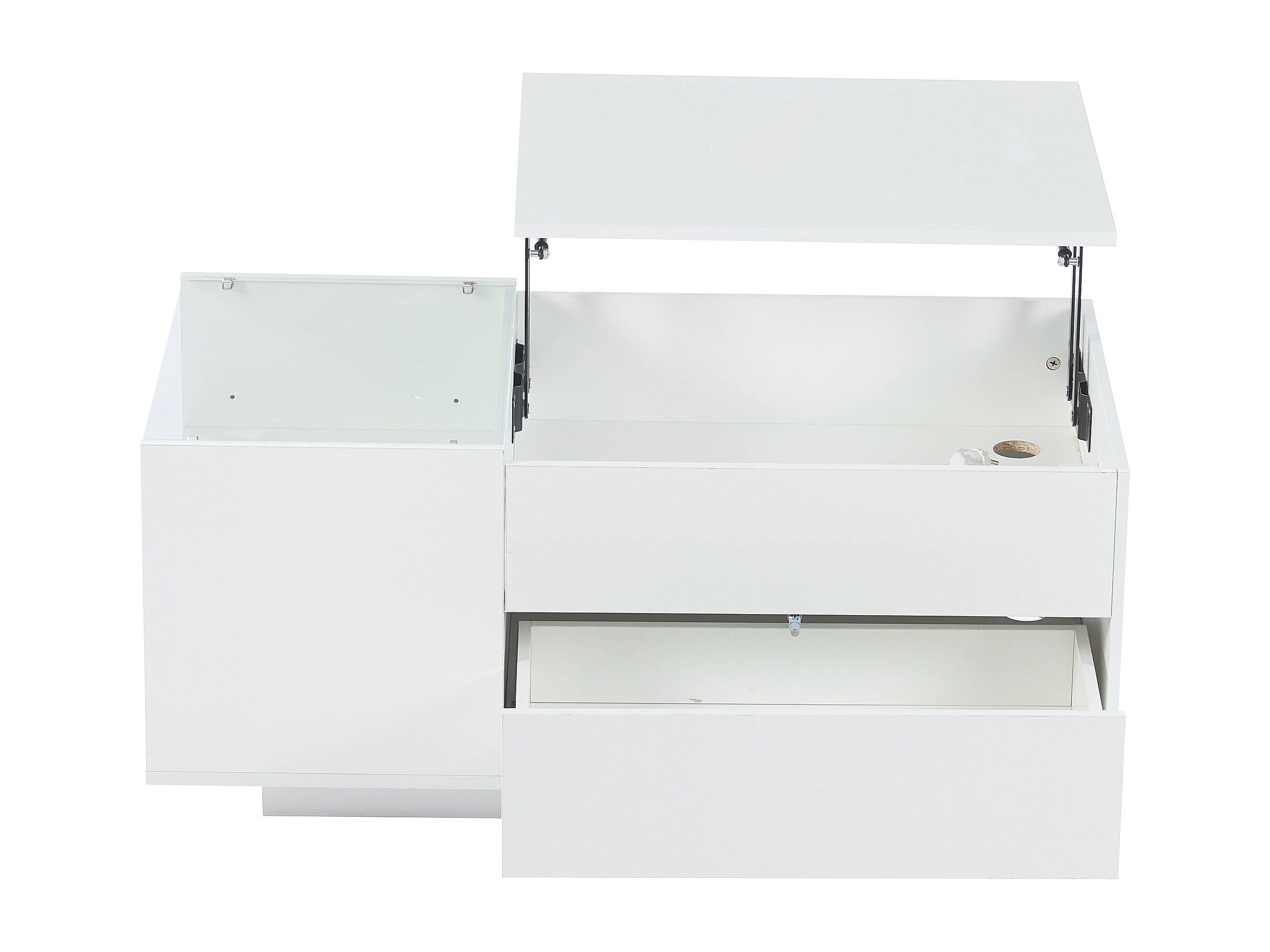 Mesa de centro blanca con tablero regulable en altura – Mesa de centro con iluminación LED y 1 cajón – Almacenaje abierto