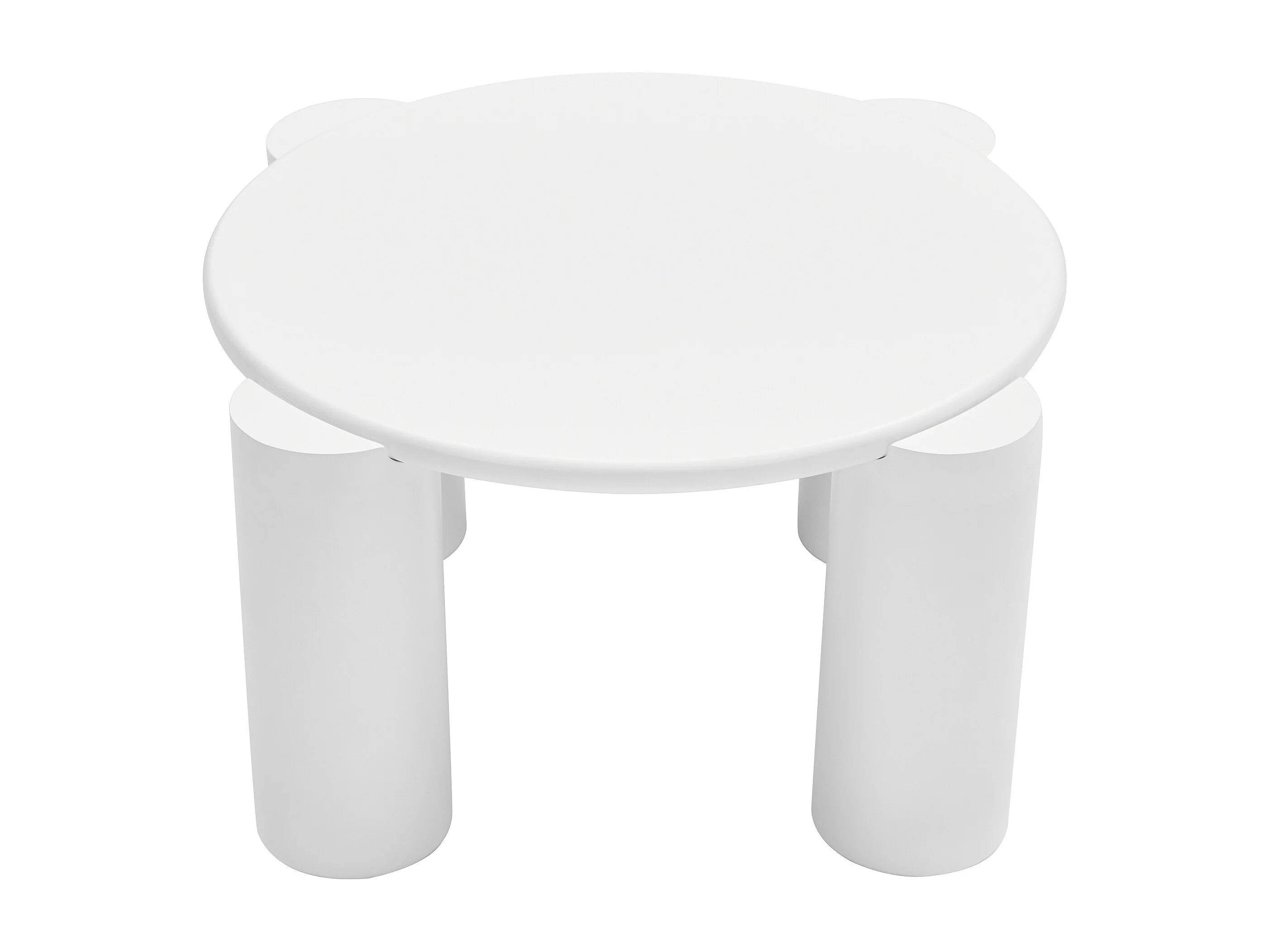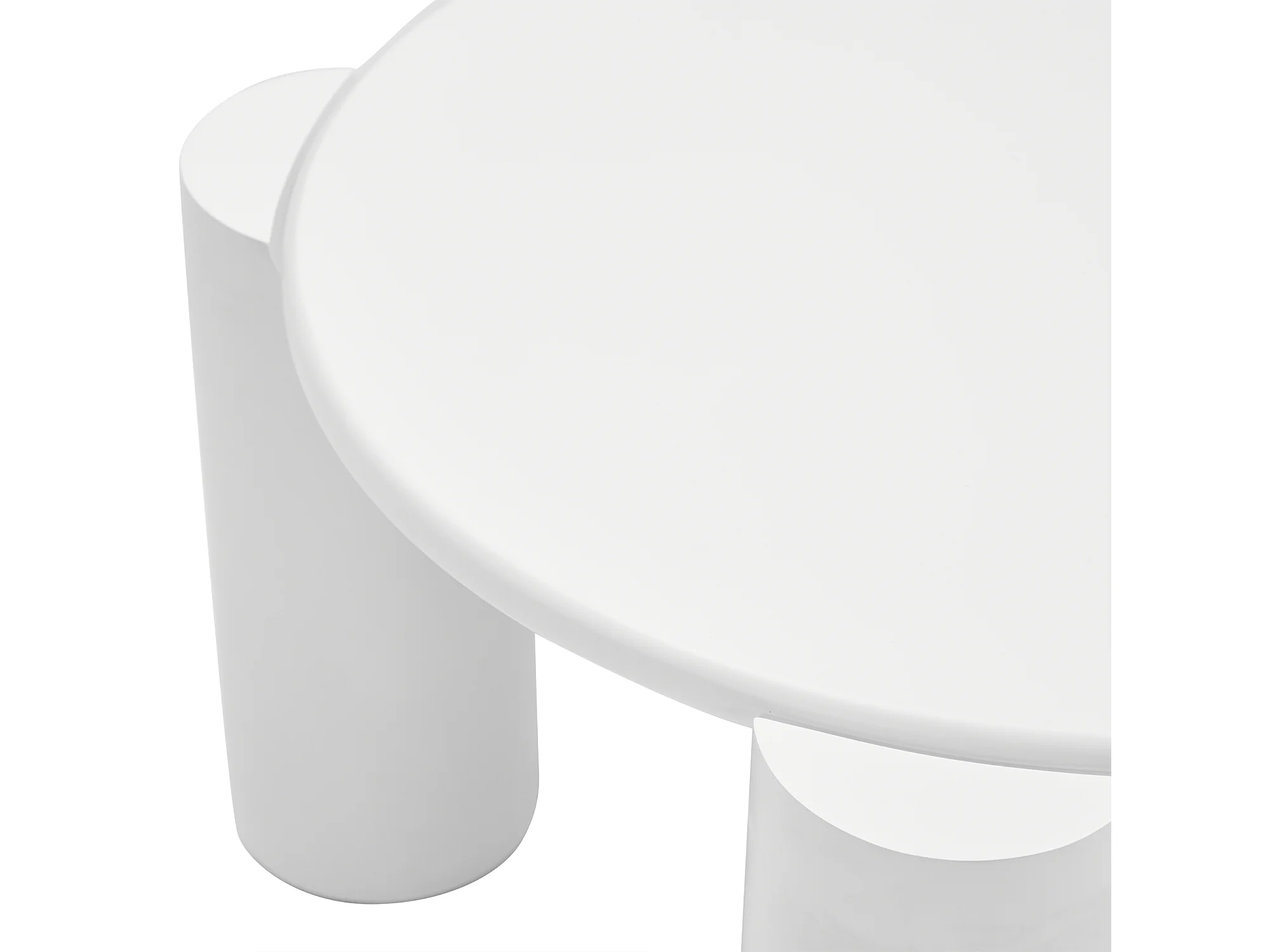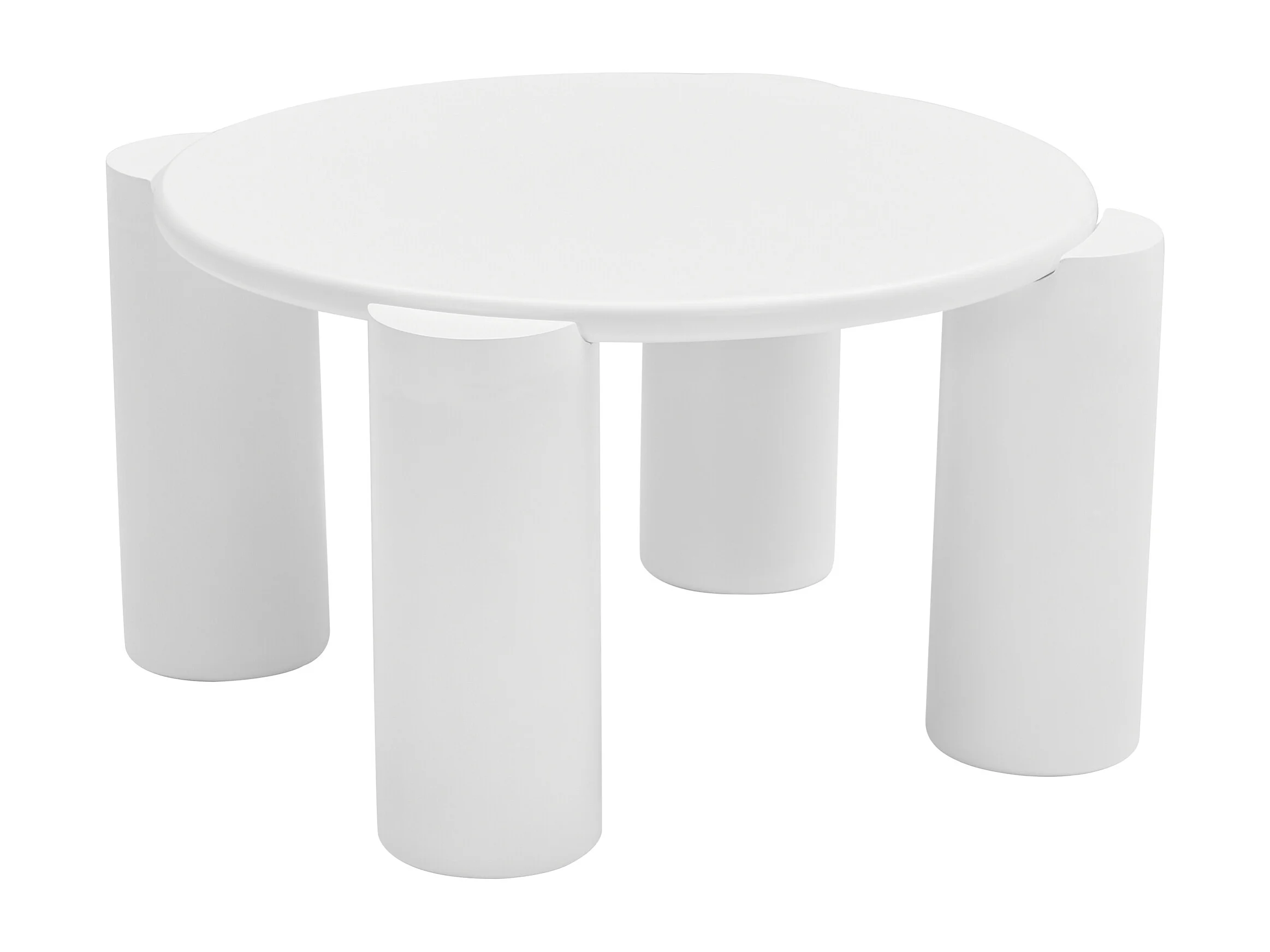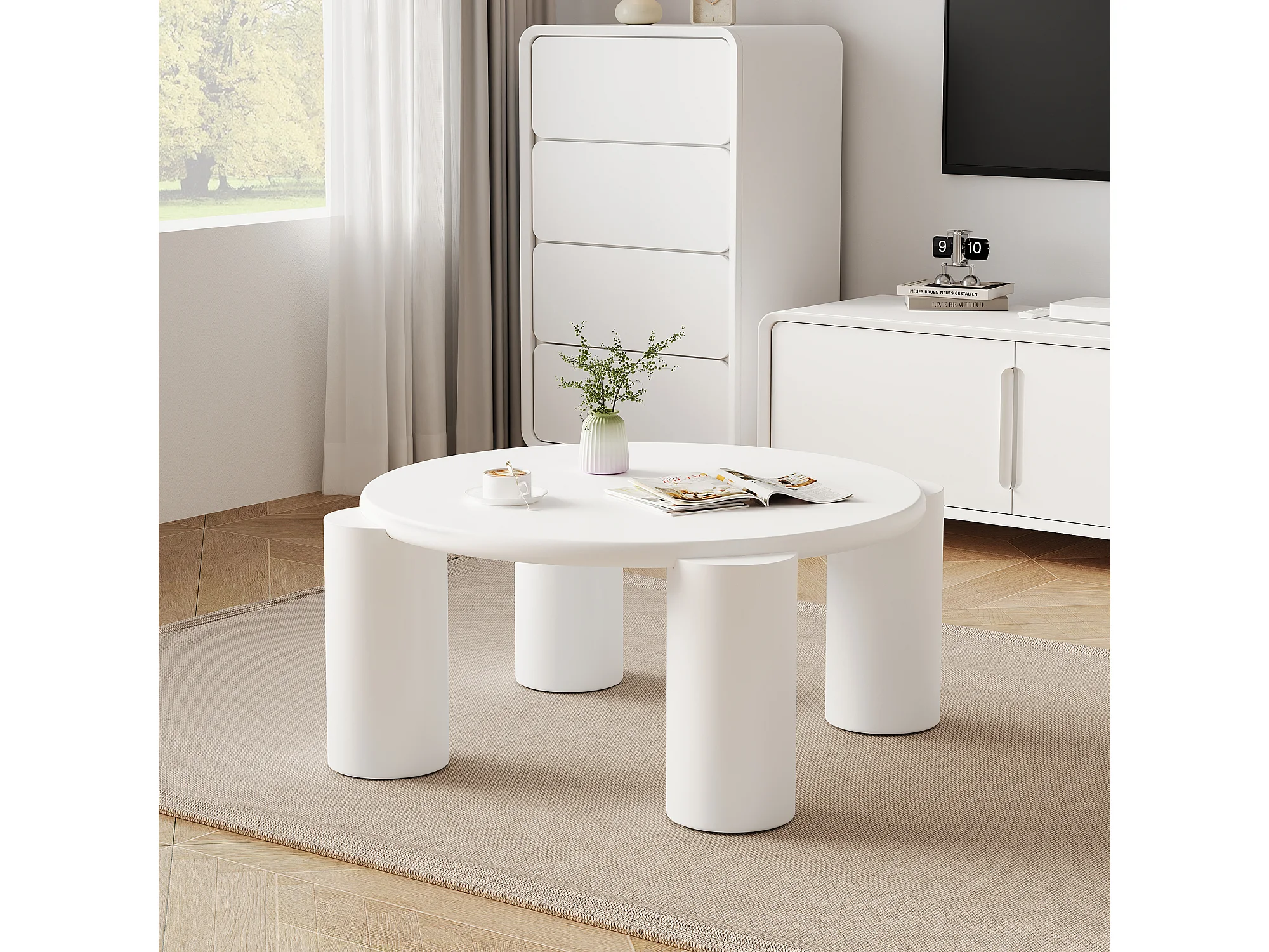 Mesa de centro blanca con tapa redonda y cuatro patas cilíndricas - adecuada para salones y dormitorios