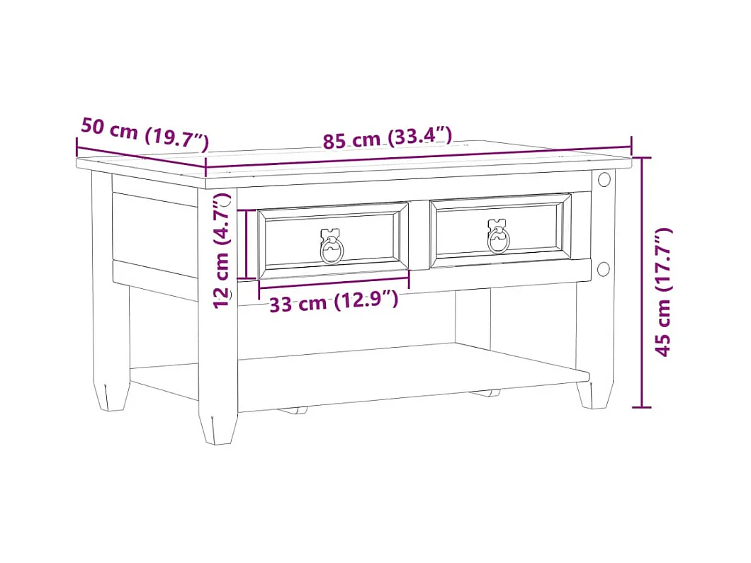 Mesa de centro cajones Corona madera maciza de pino 85x50x45 cm
