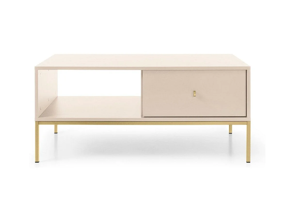 Mesa de centro con 1 cajón y patas de metal dorado 104x68 cm