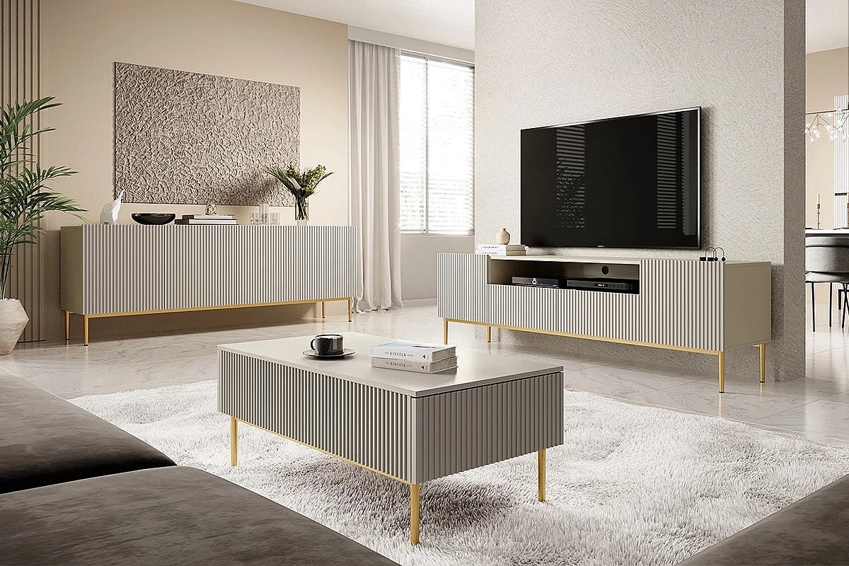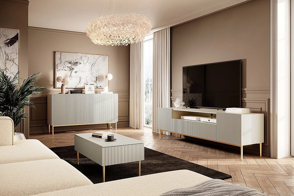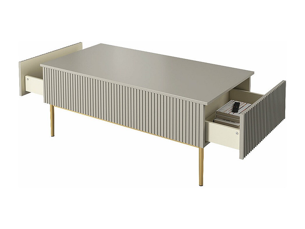 Mesa de centro con 2 cajones, pie de metal cachemir dorado, 120x60 cm