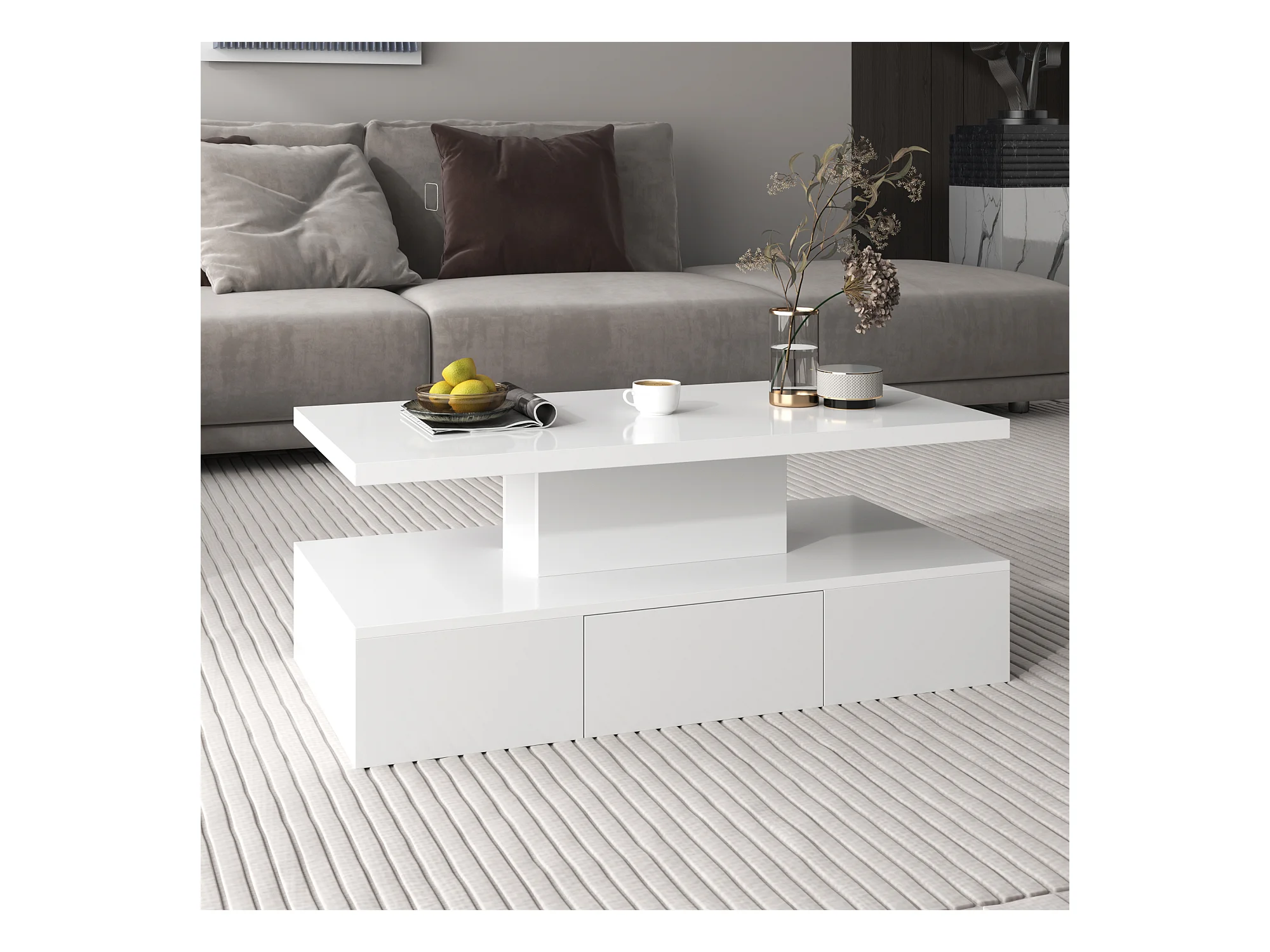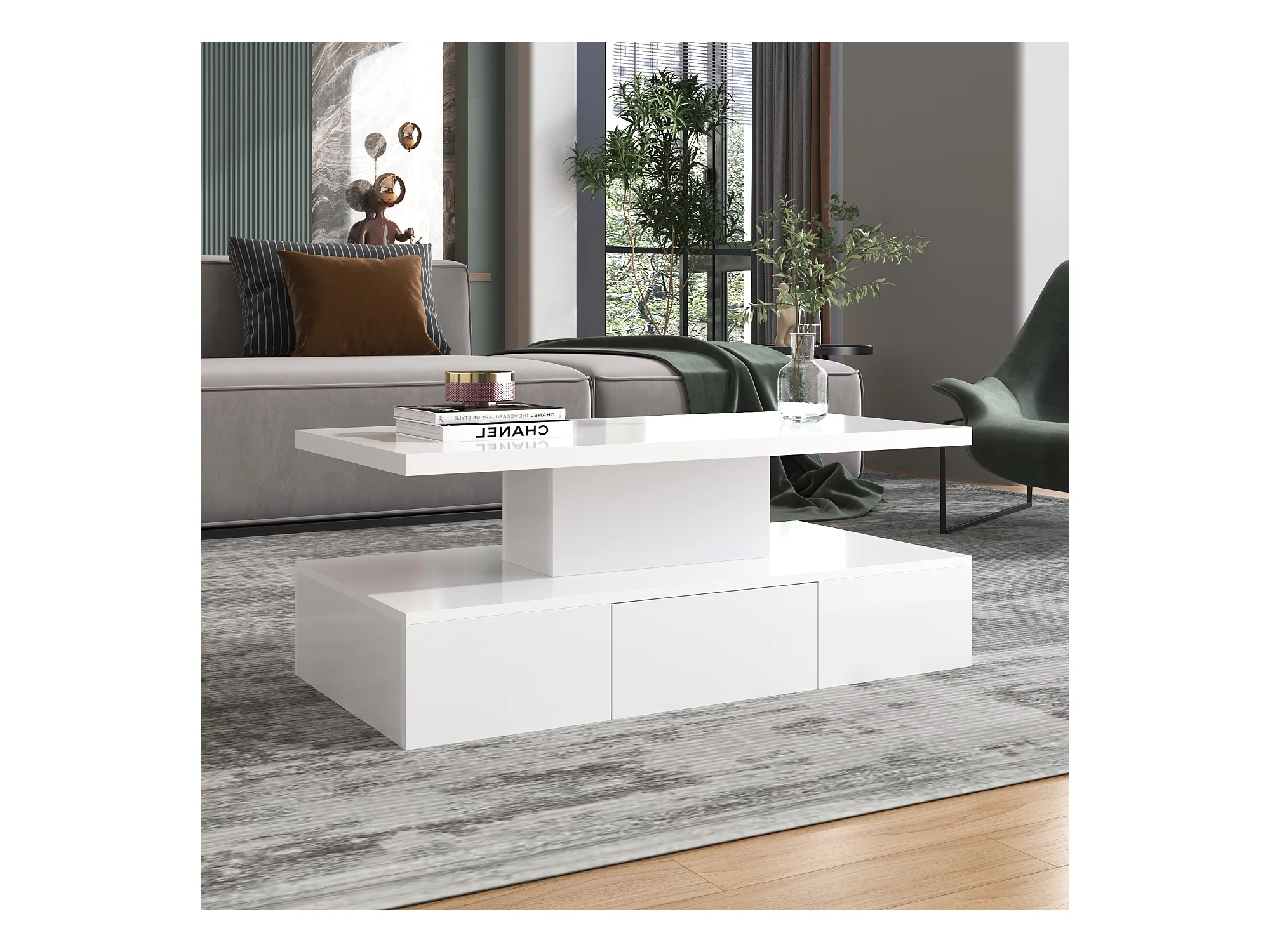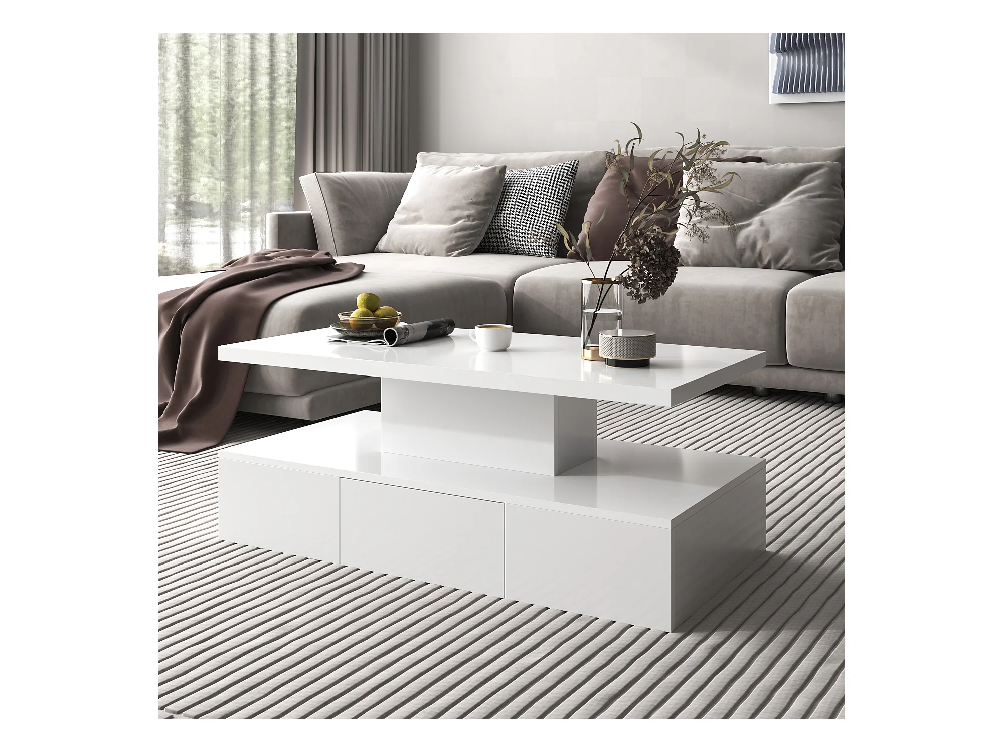 Mesa de centro con 4 cajones, diseño de línea única y combinación de colores, 78*78*36 cm