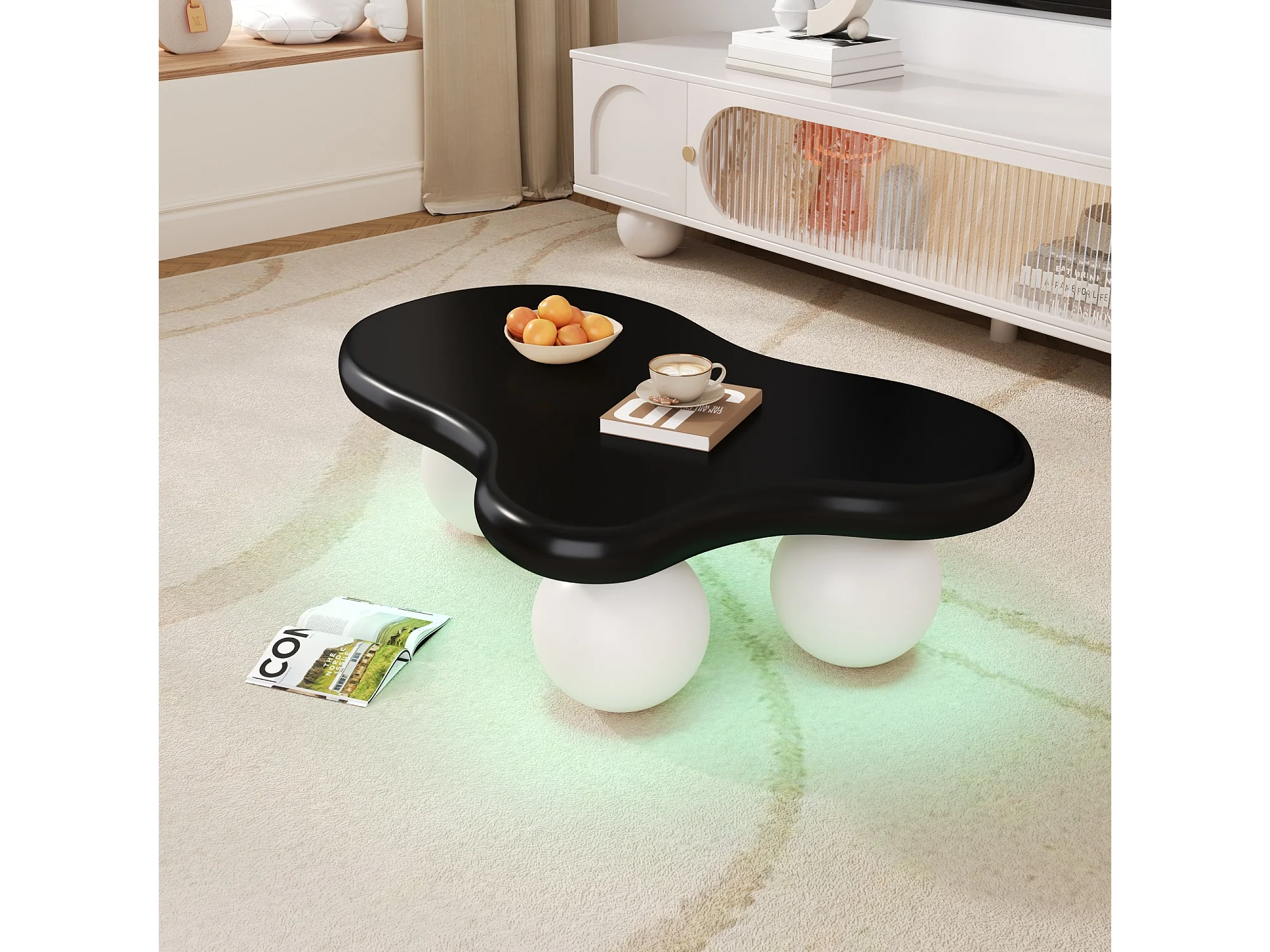 Mesa de centro con diseño de nube y LED, forma original, tablero iluminado estilo nube, negro y blanco