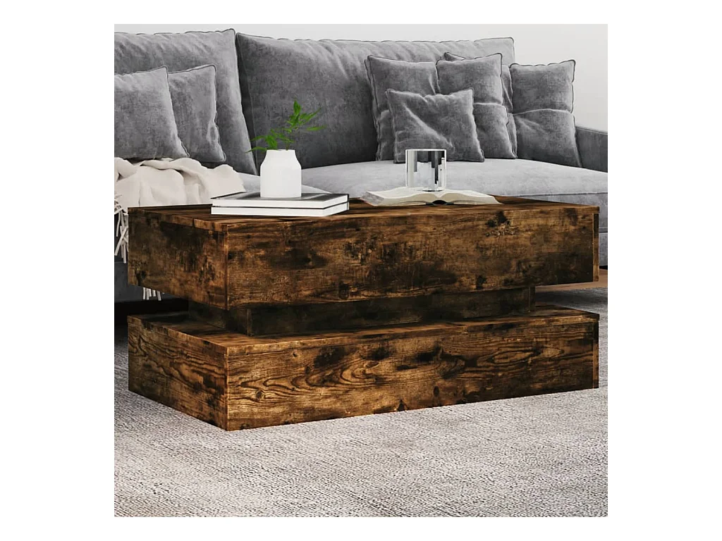 Mesa de centro con luces LED roble ahumado 90x50x40 cm