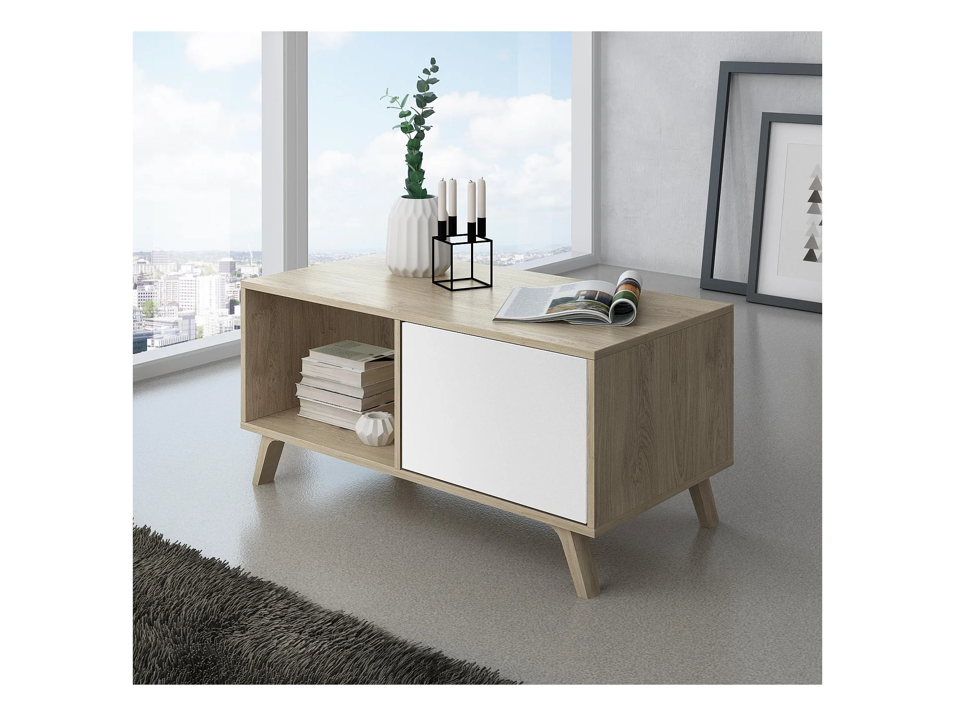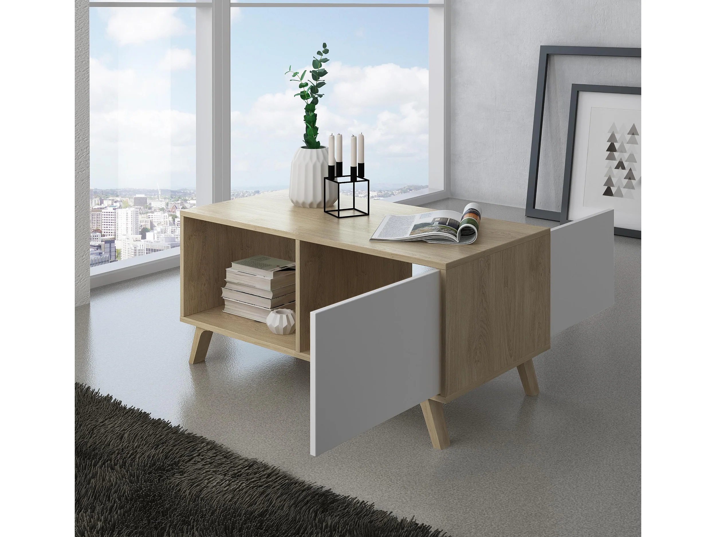 Mesa de centro con puertas, Modelo WIND, estructura roble/color puertas Blanco.