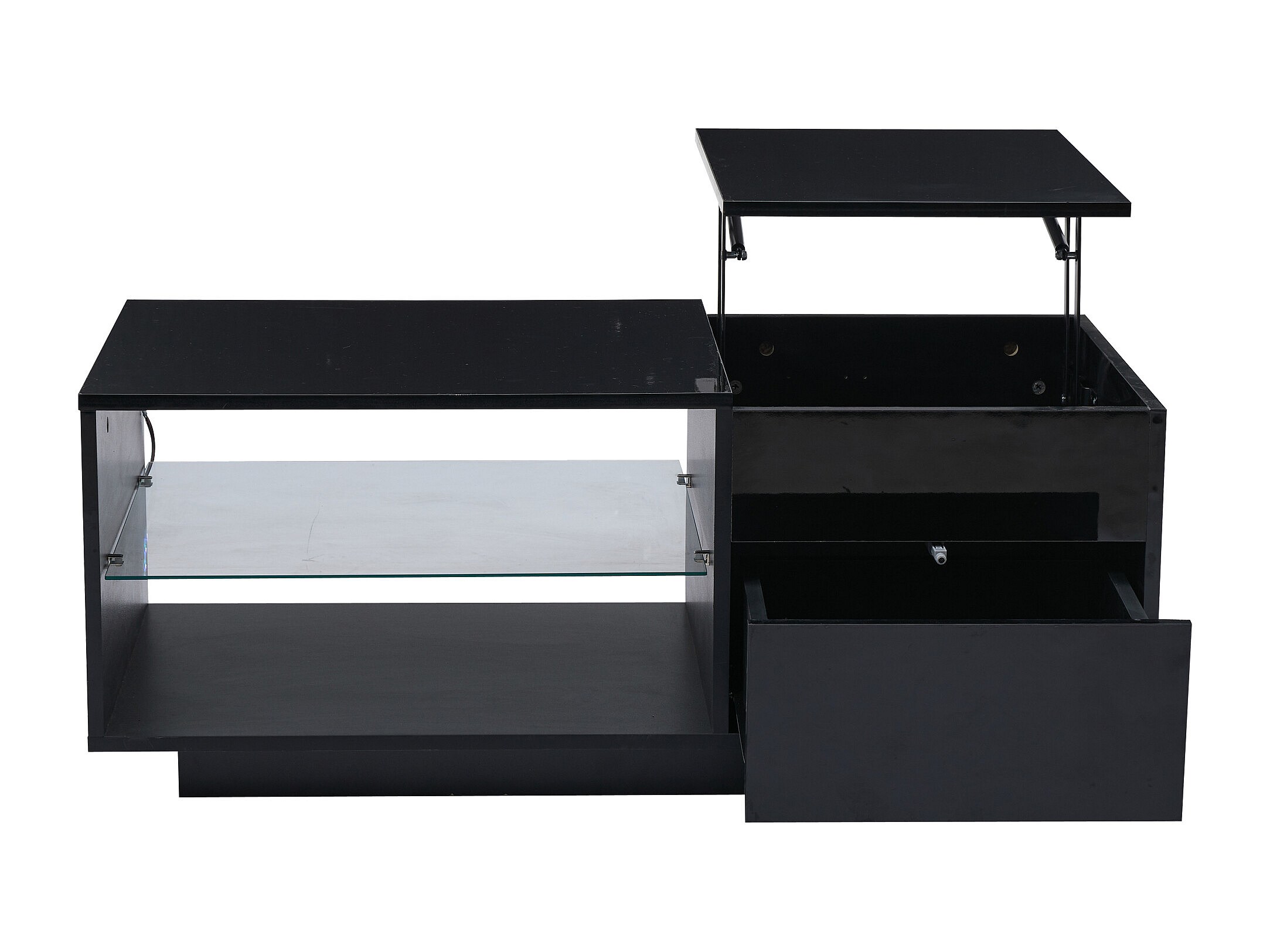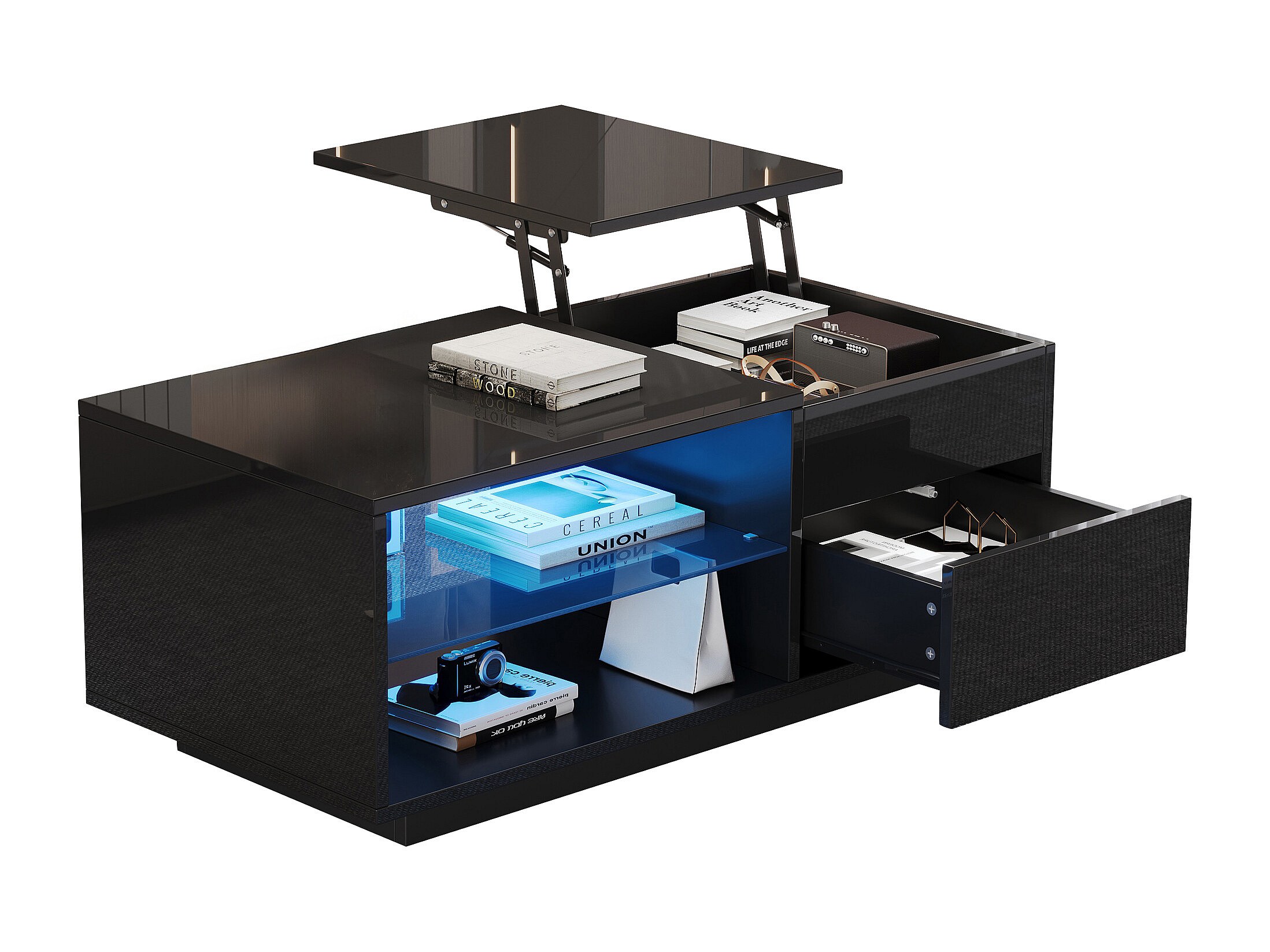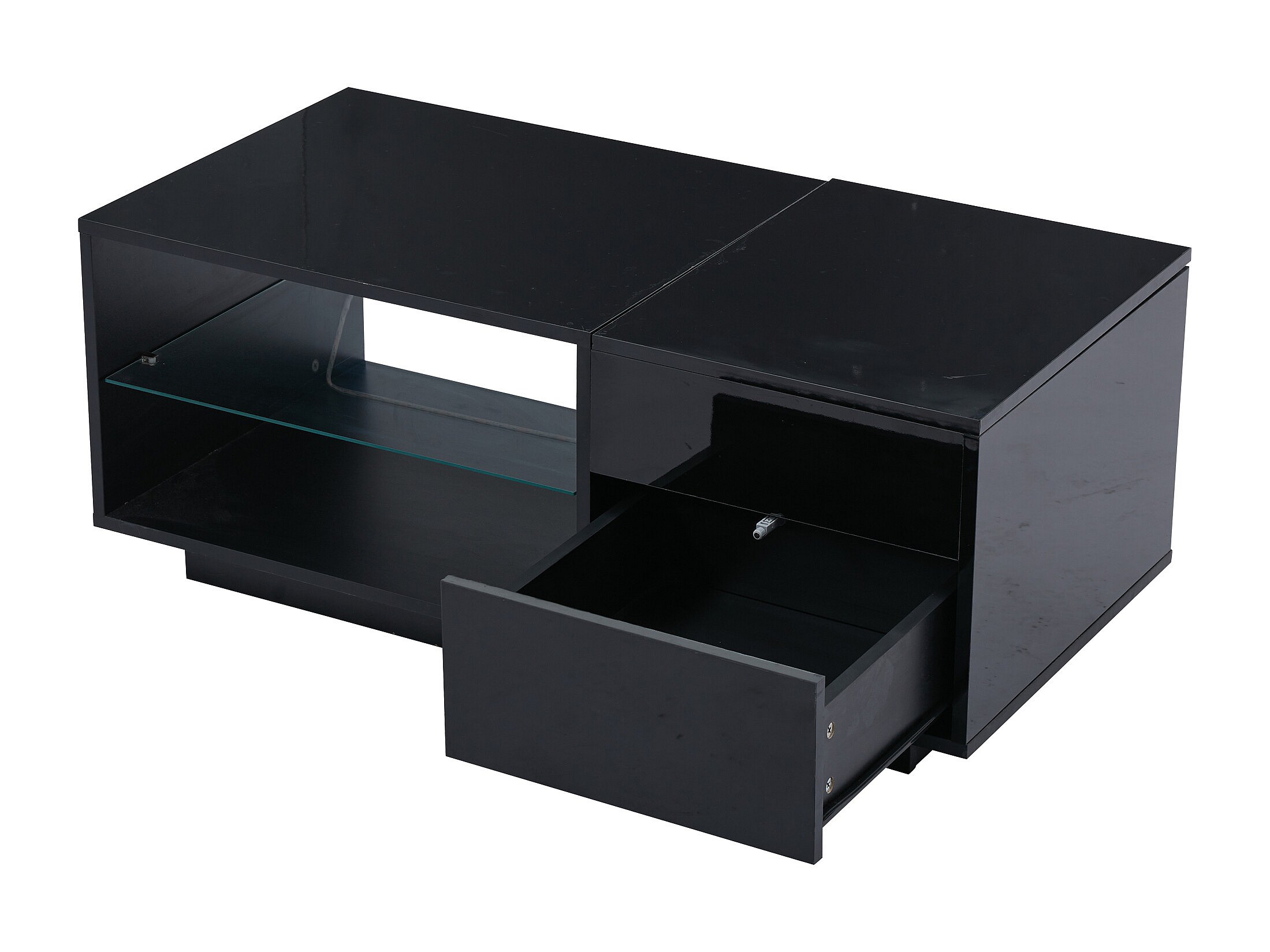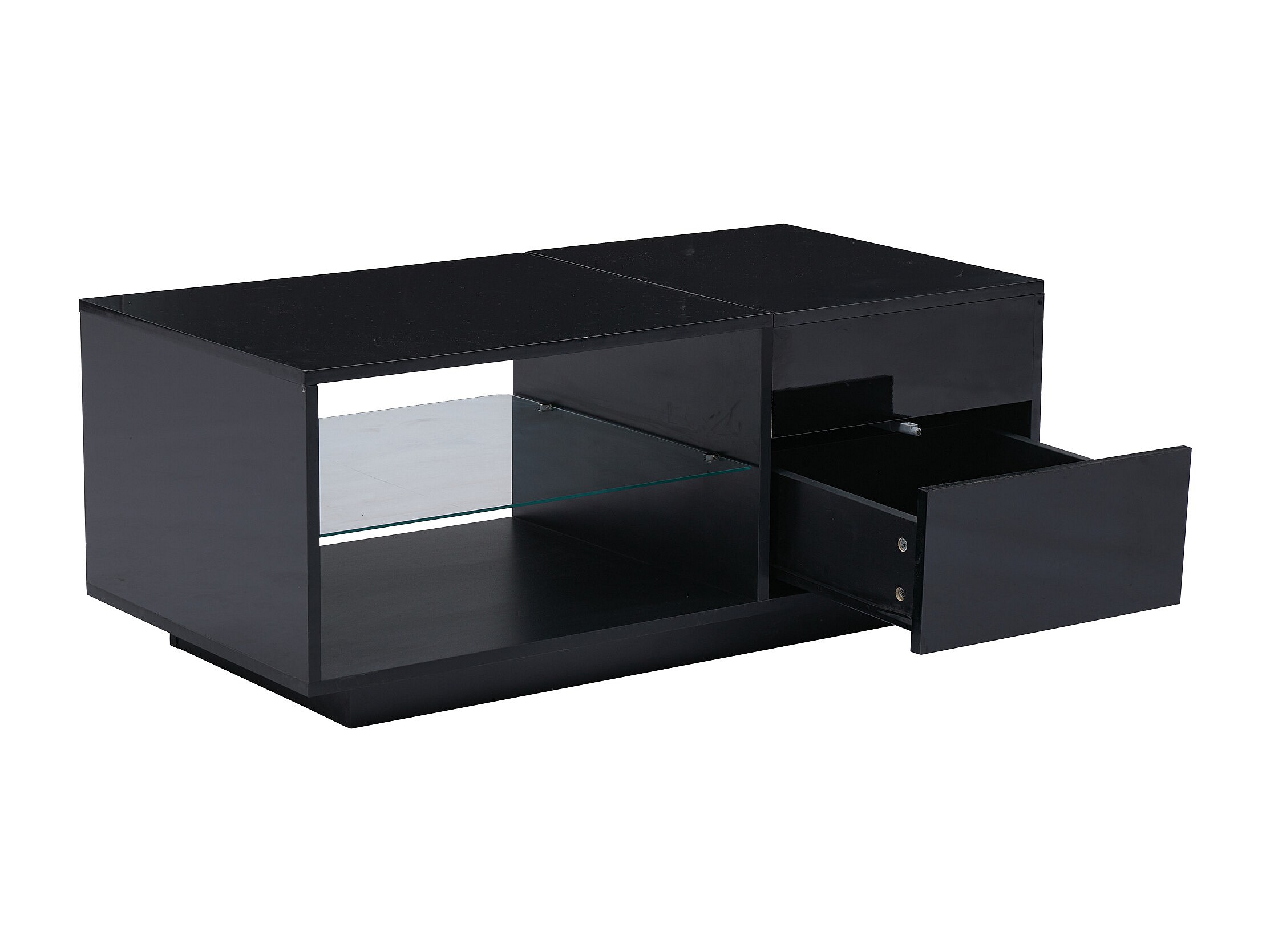 Mesa de centro con tablero regulable en altura - Mesa de centro con 1 cajón y 2 espacios de almacenamiento abiertos - negro