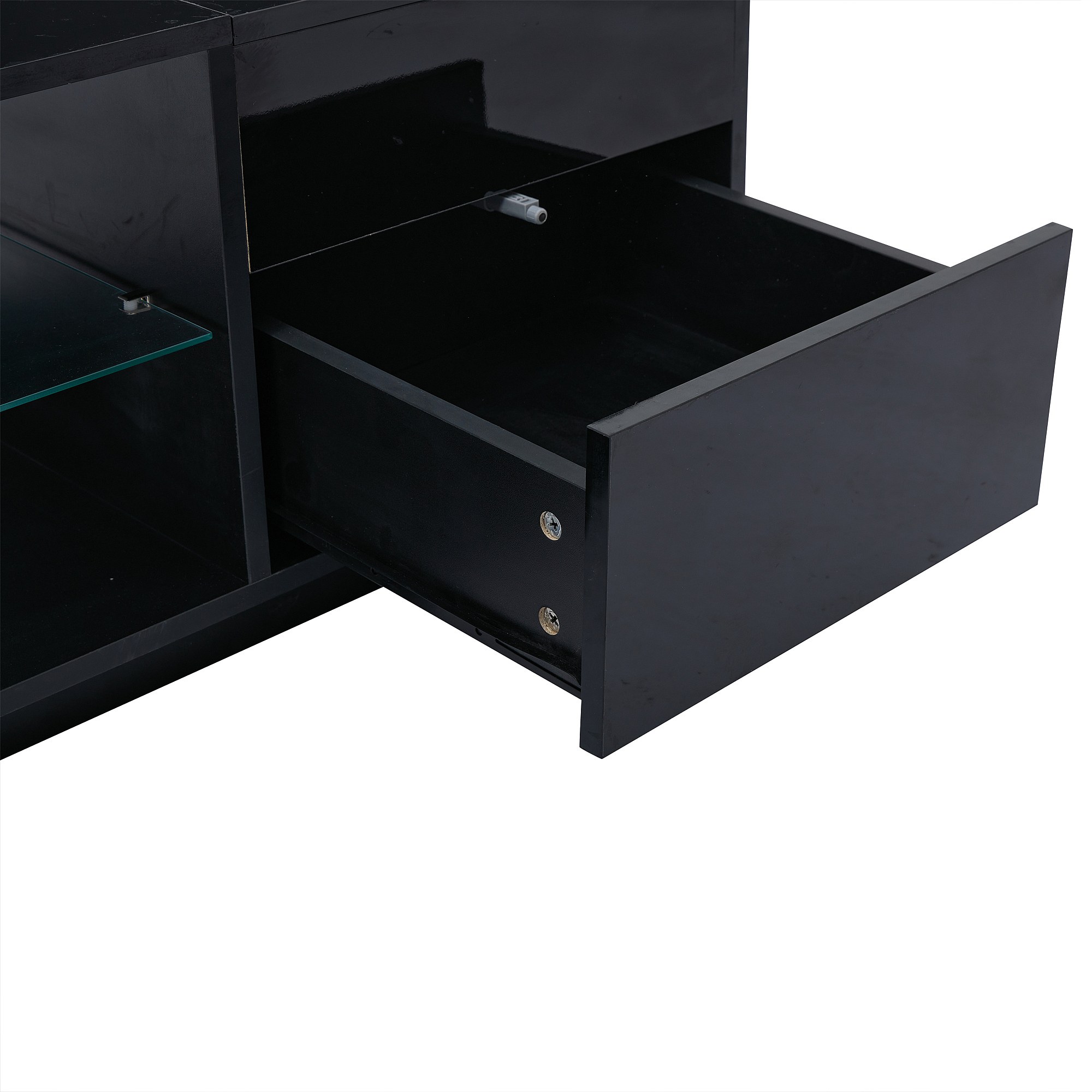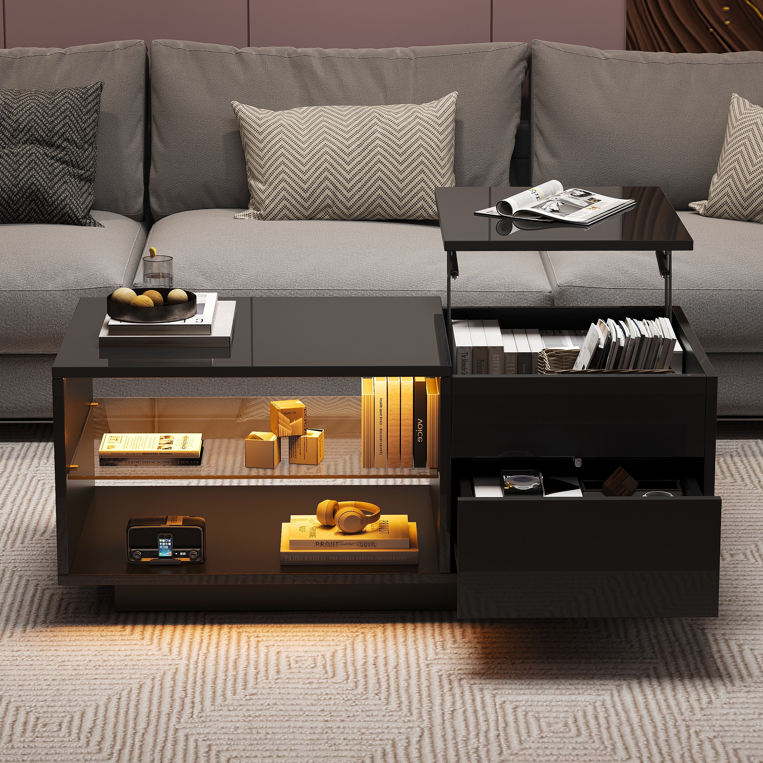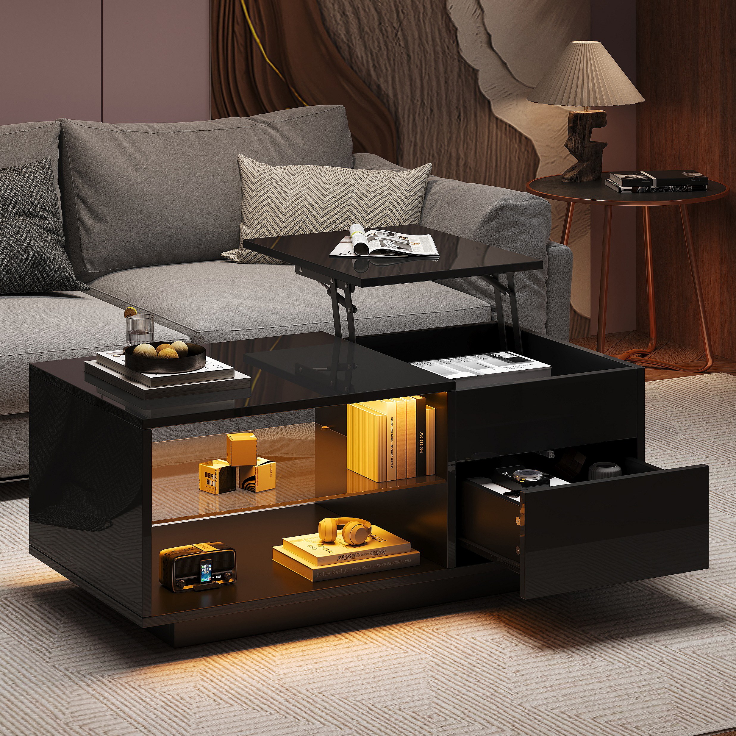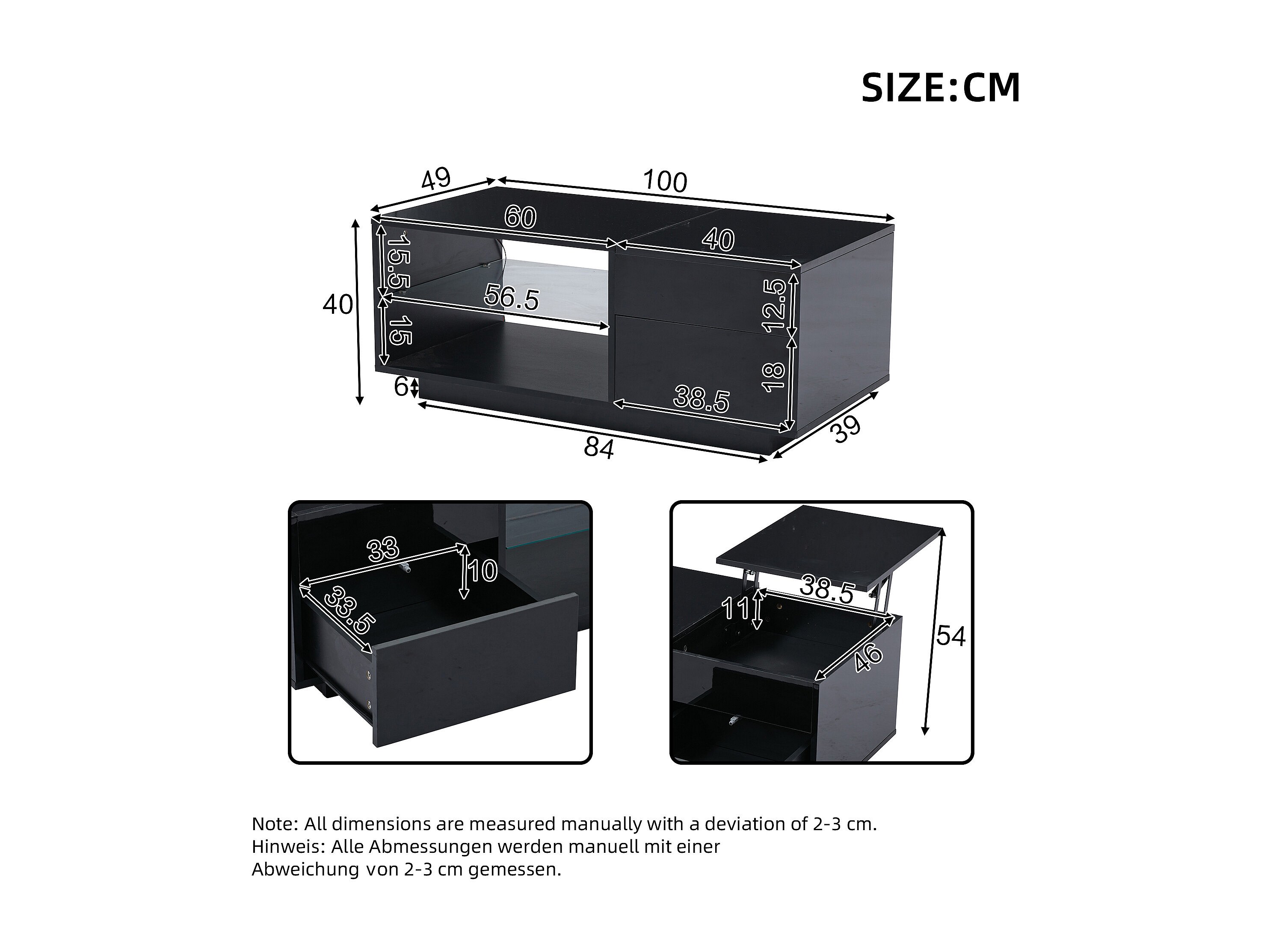 Mesa de centro con tablero regulable en altura - Mesa de centro con 1 cajón y 2 espacios de almacenamiento abiertos - negro