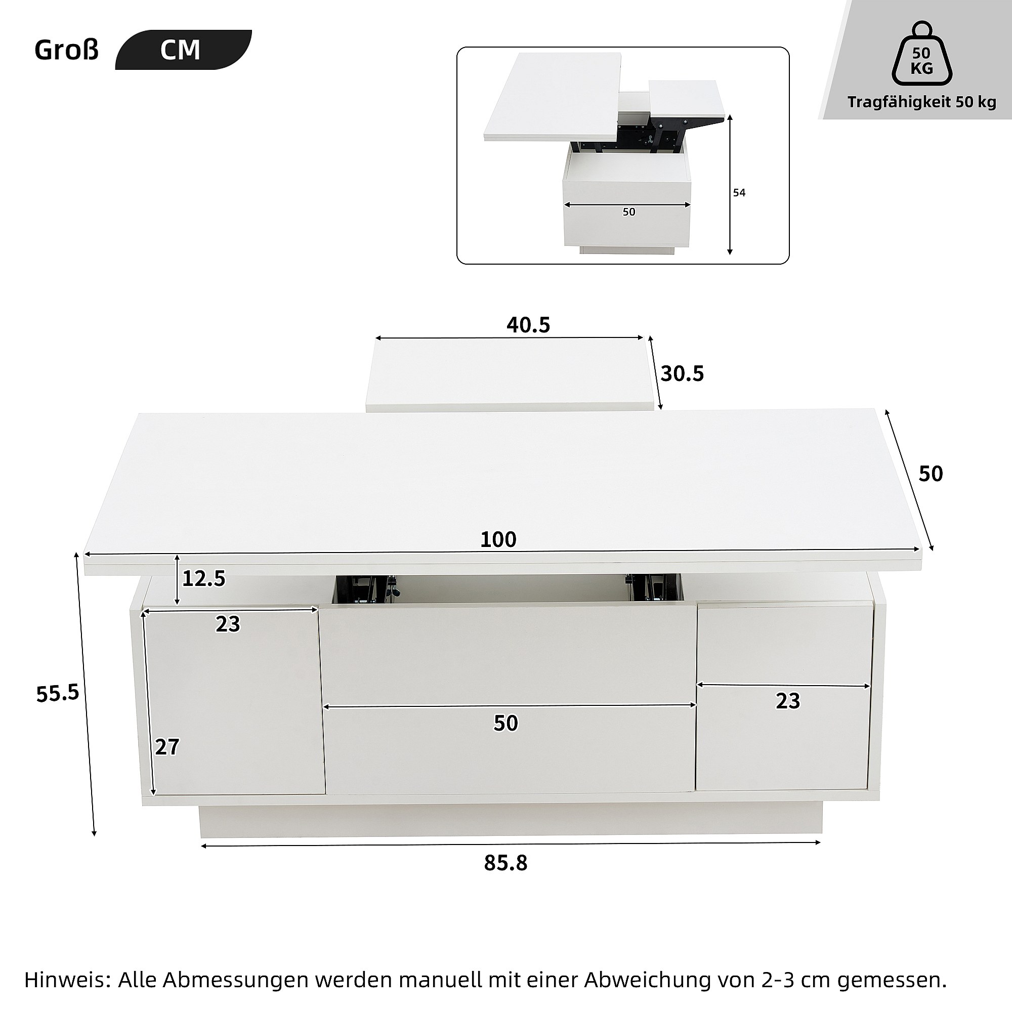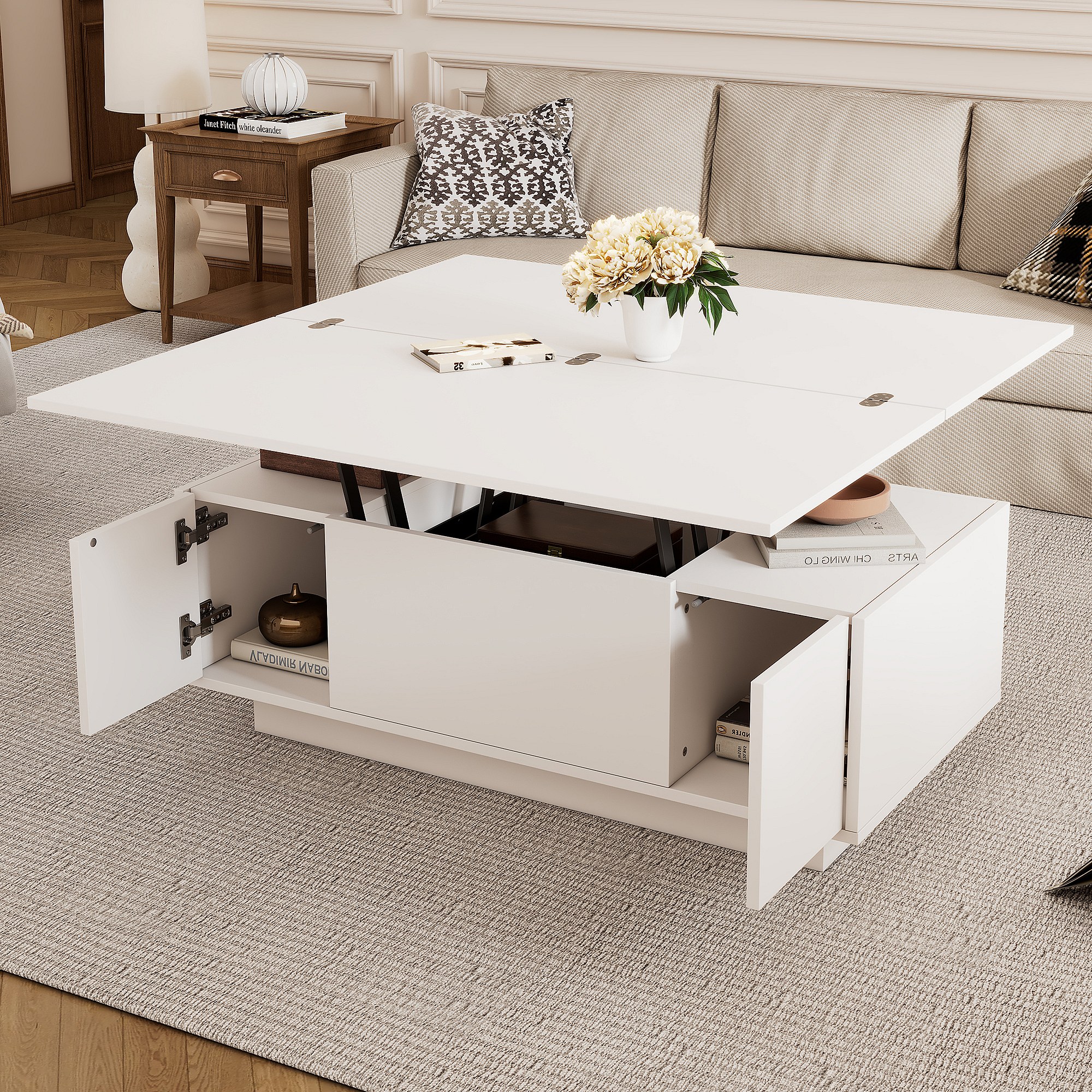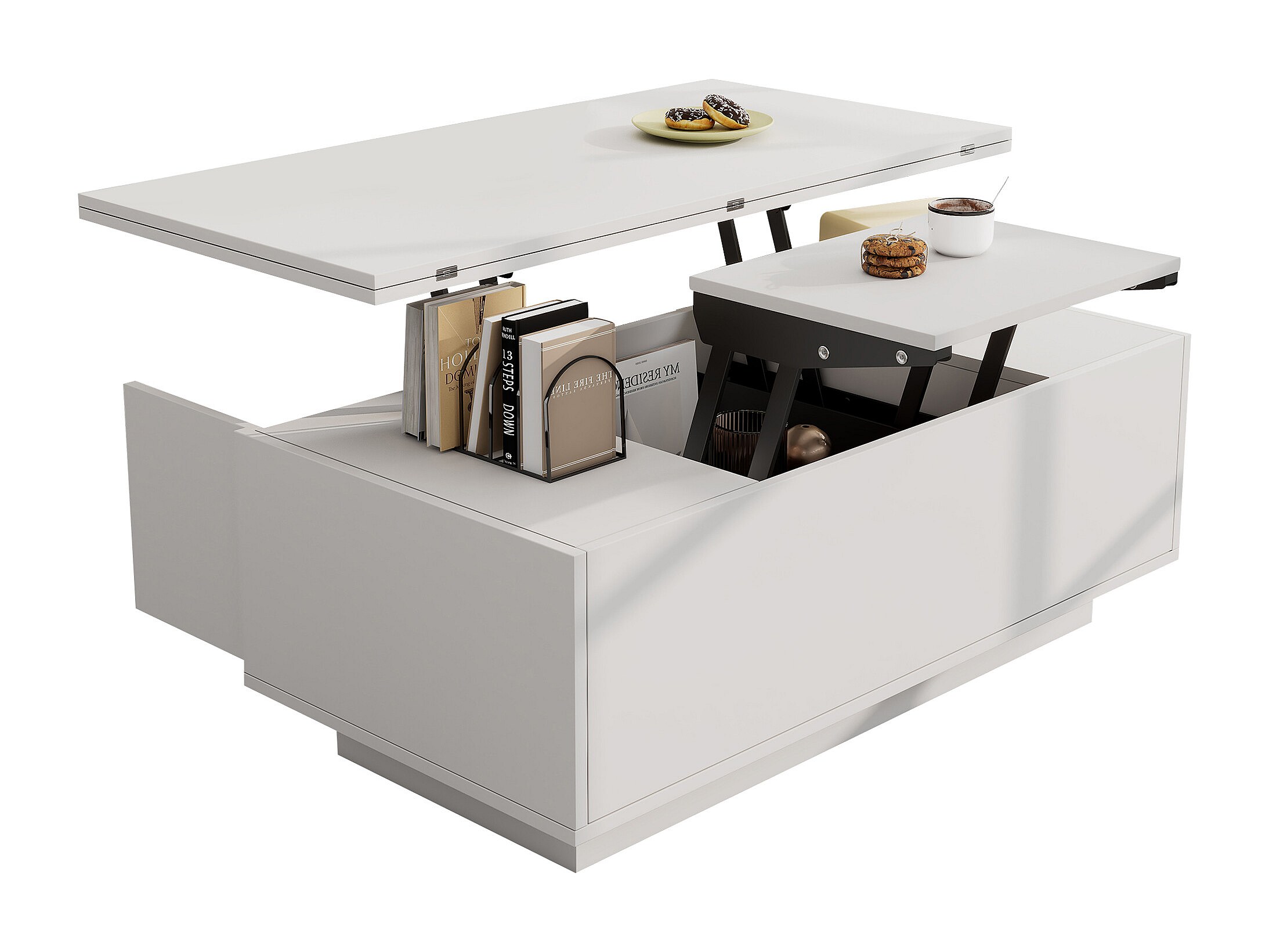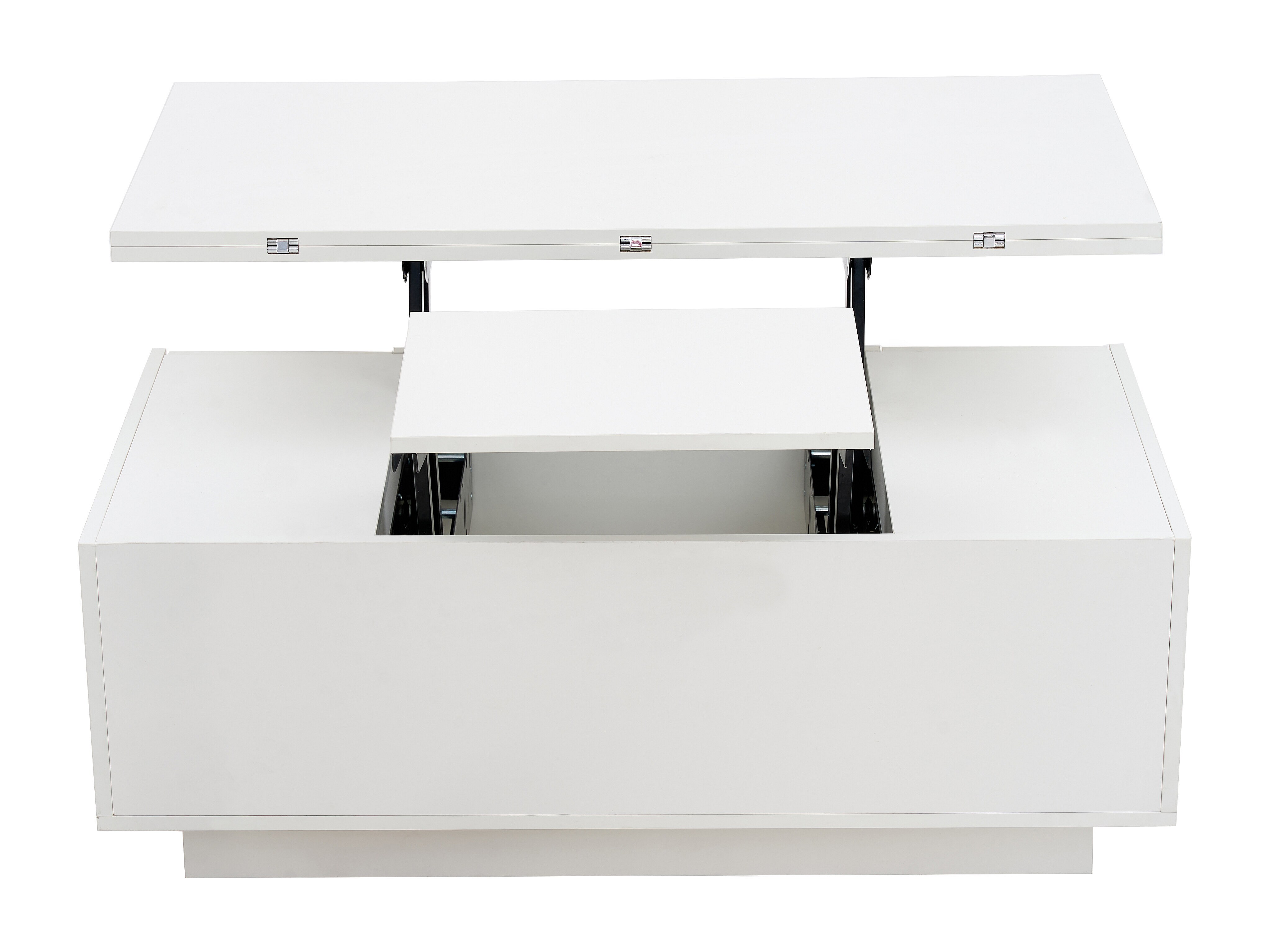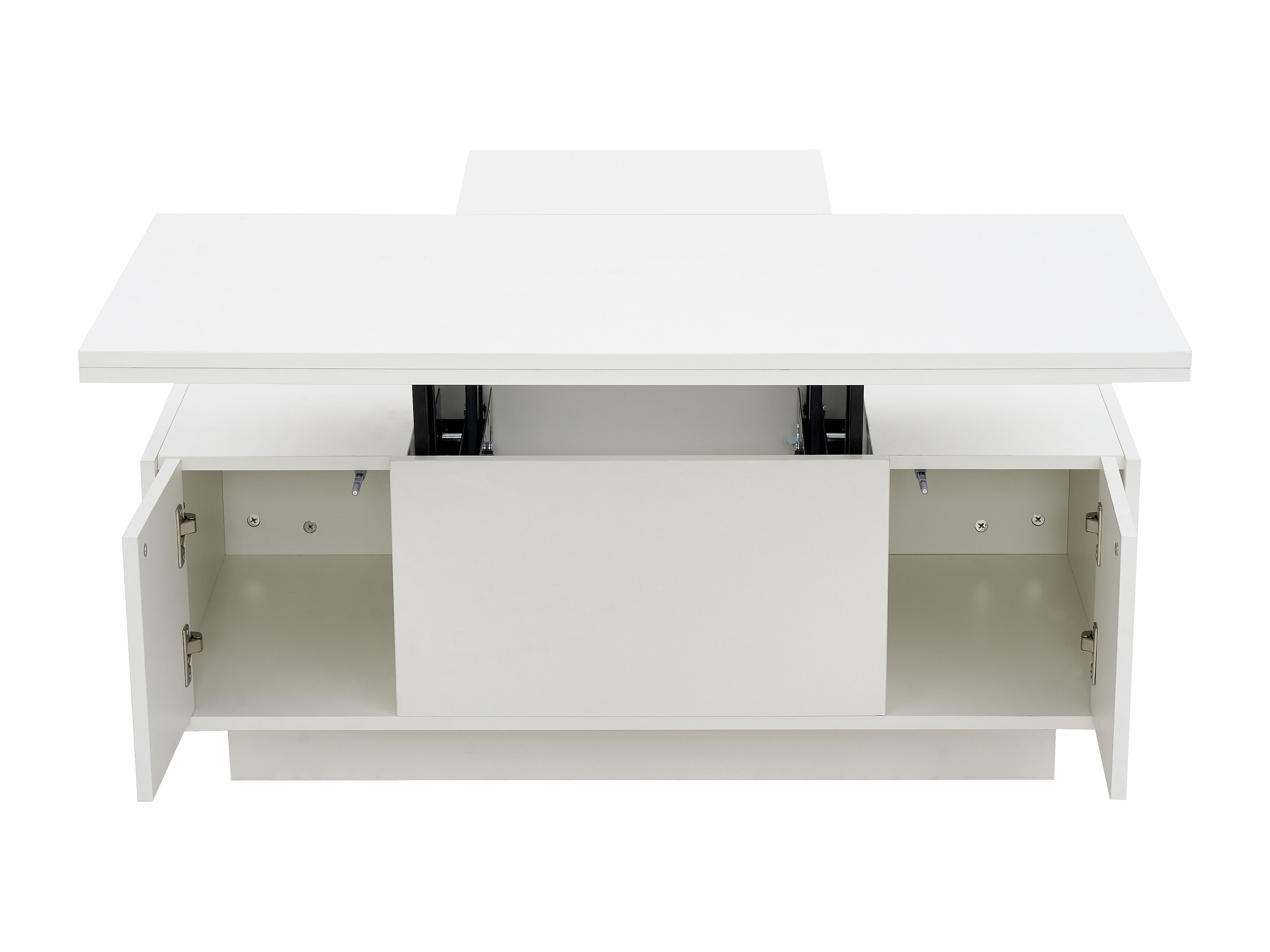 Mesa de centro con tapa elevable doble - Mesa de centro de 2 puertas - almacenamiento oculto - blanco