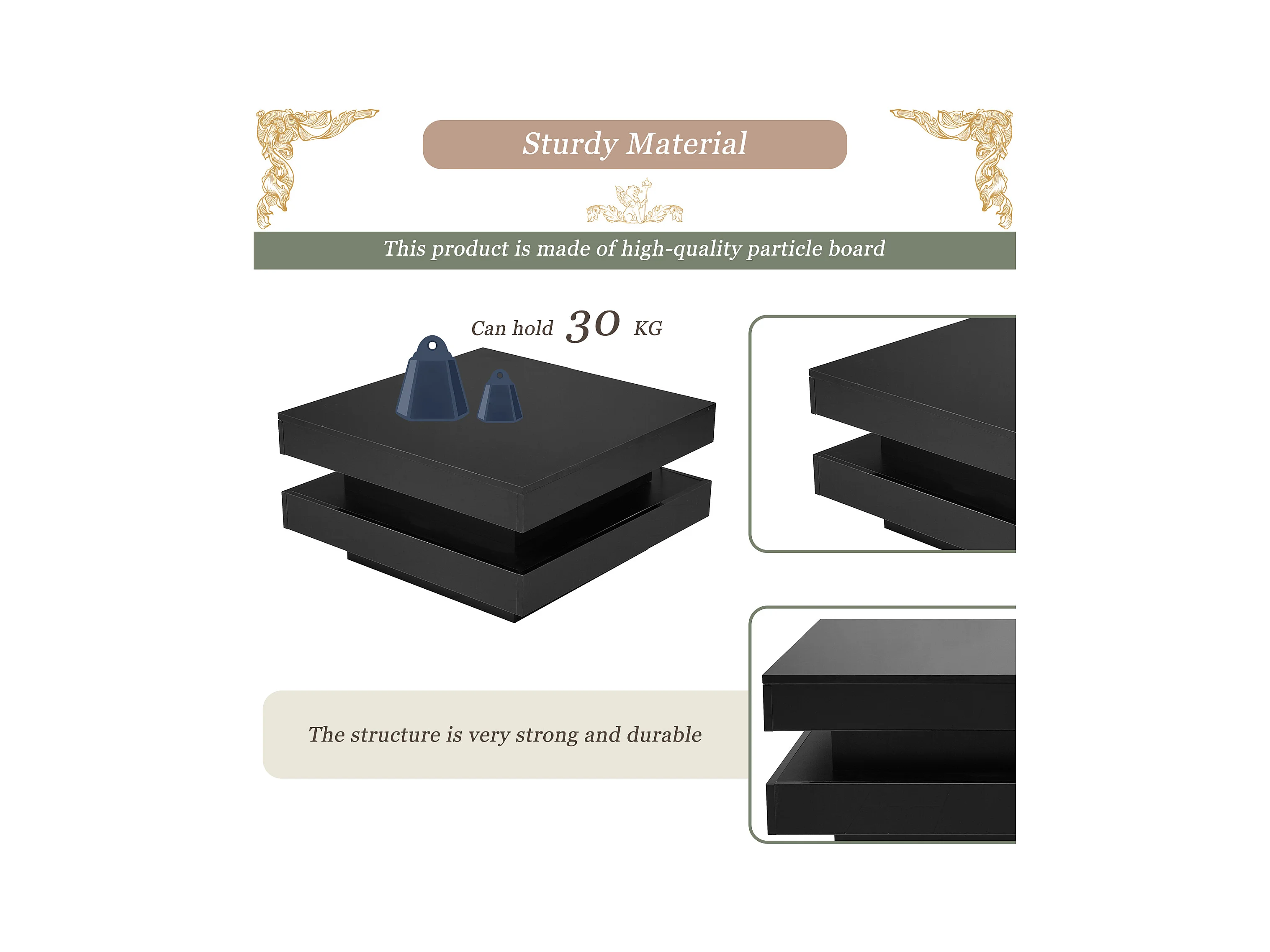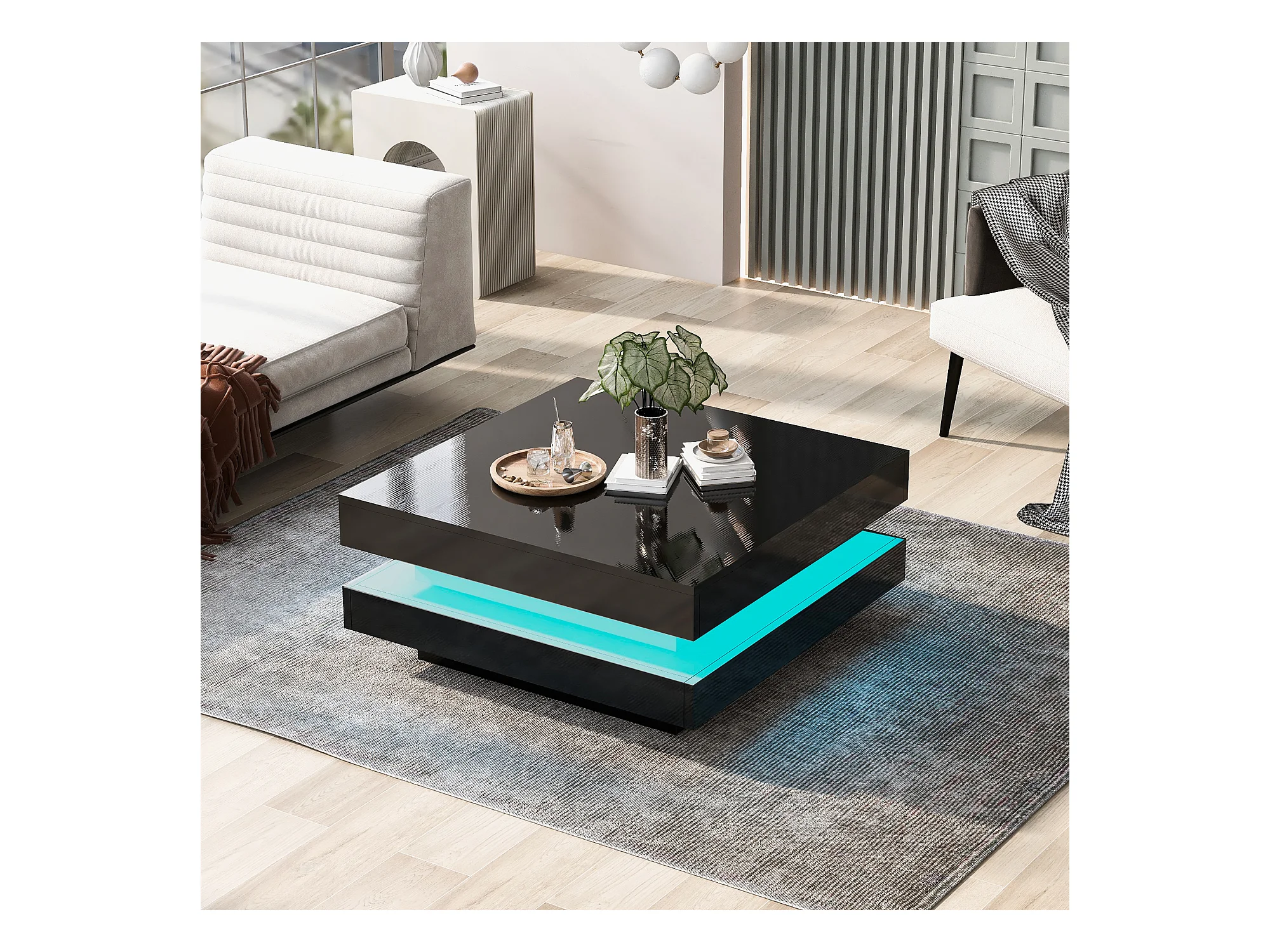 Mesa de centro cuadrada con iluminación LED - 70x70x36 cm - Tablero de partículas - Negro