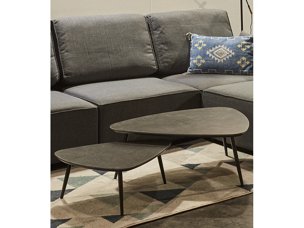 Mesa de centro de 35x97x79 cm con sobre de cerámica en negro y estructura metálica Island