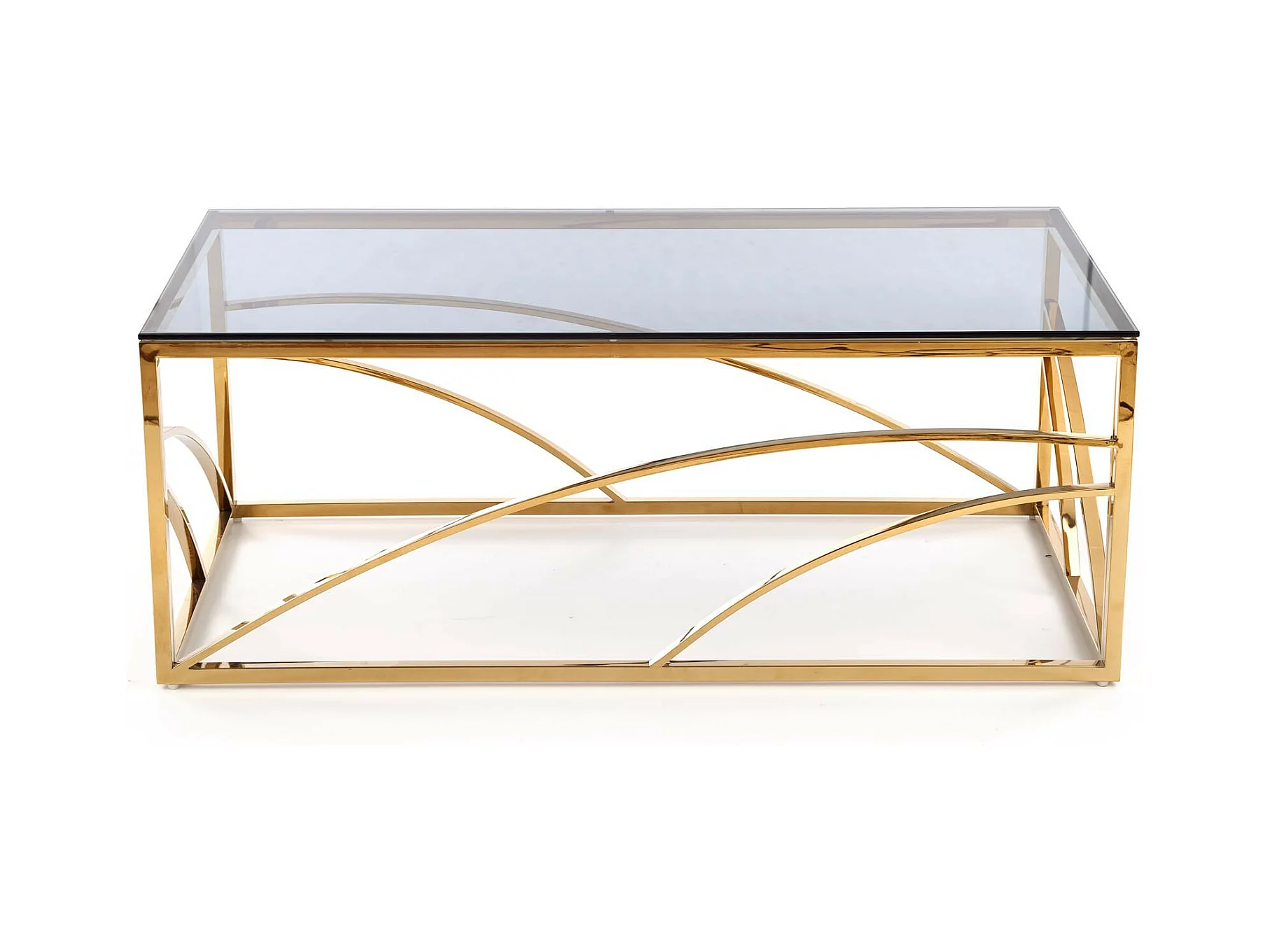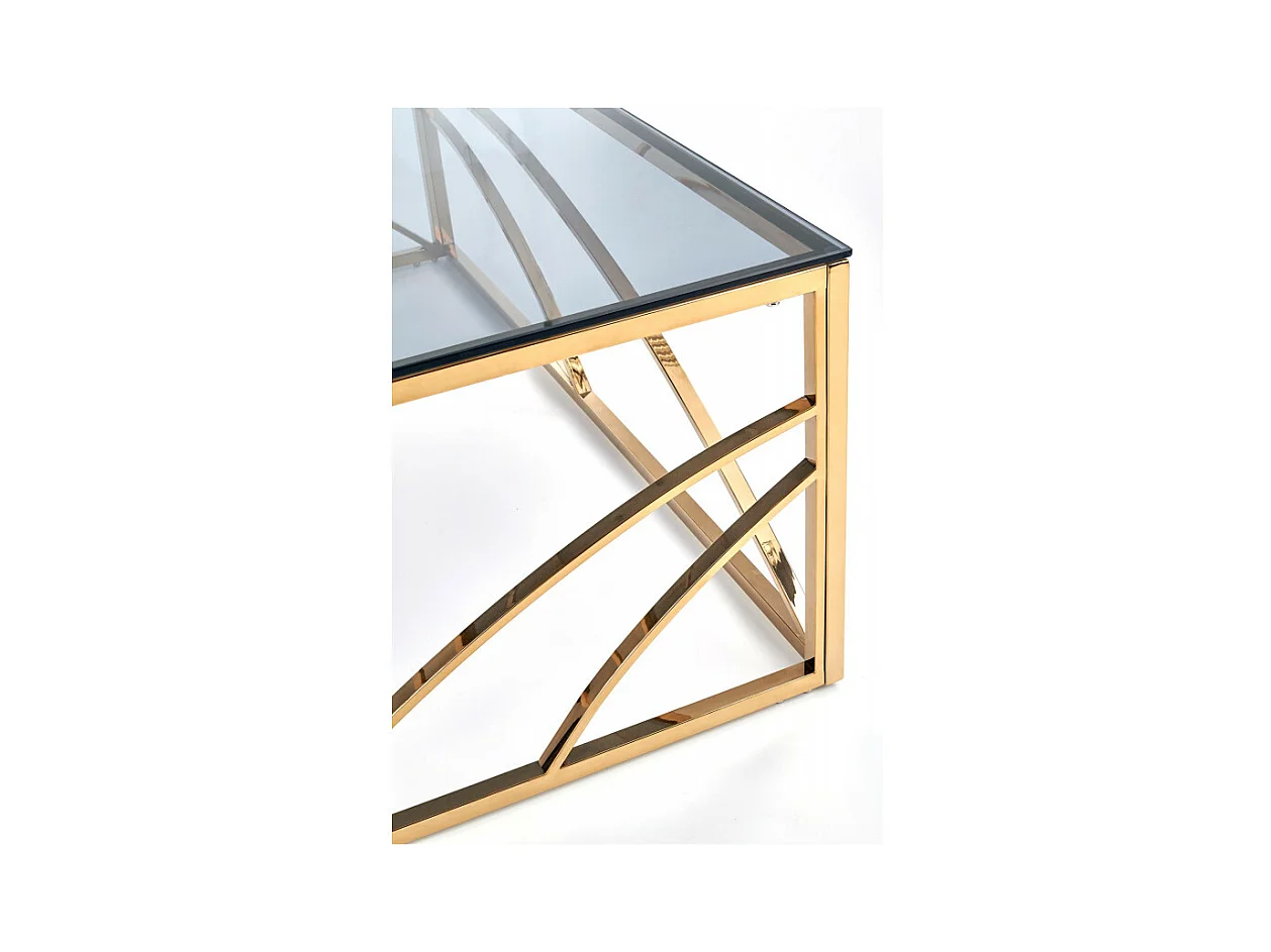 Mesa de centro de 60x120cm con estructura de acero dorado y tapa de cristal ahumado Sochic