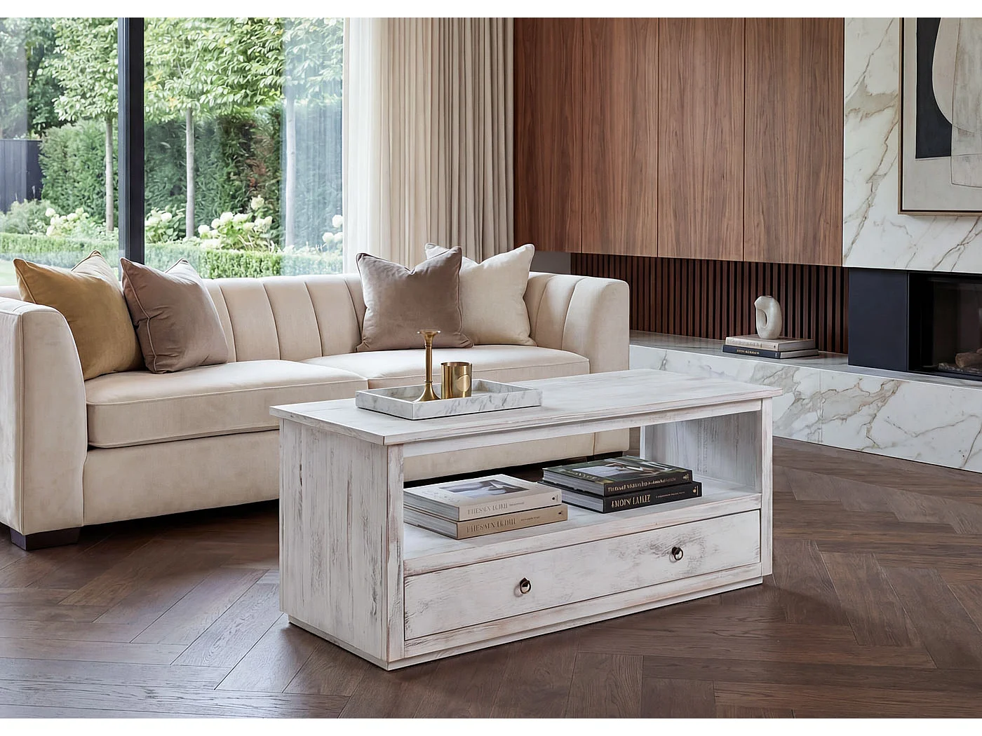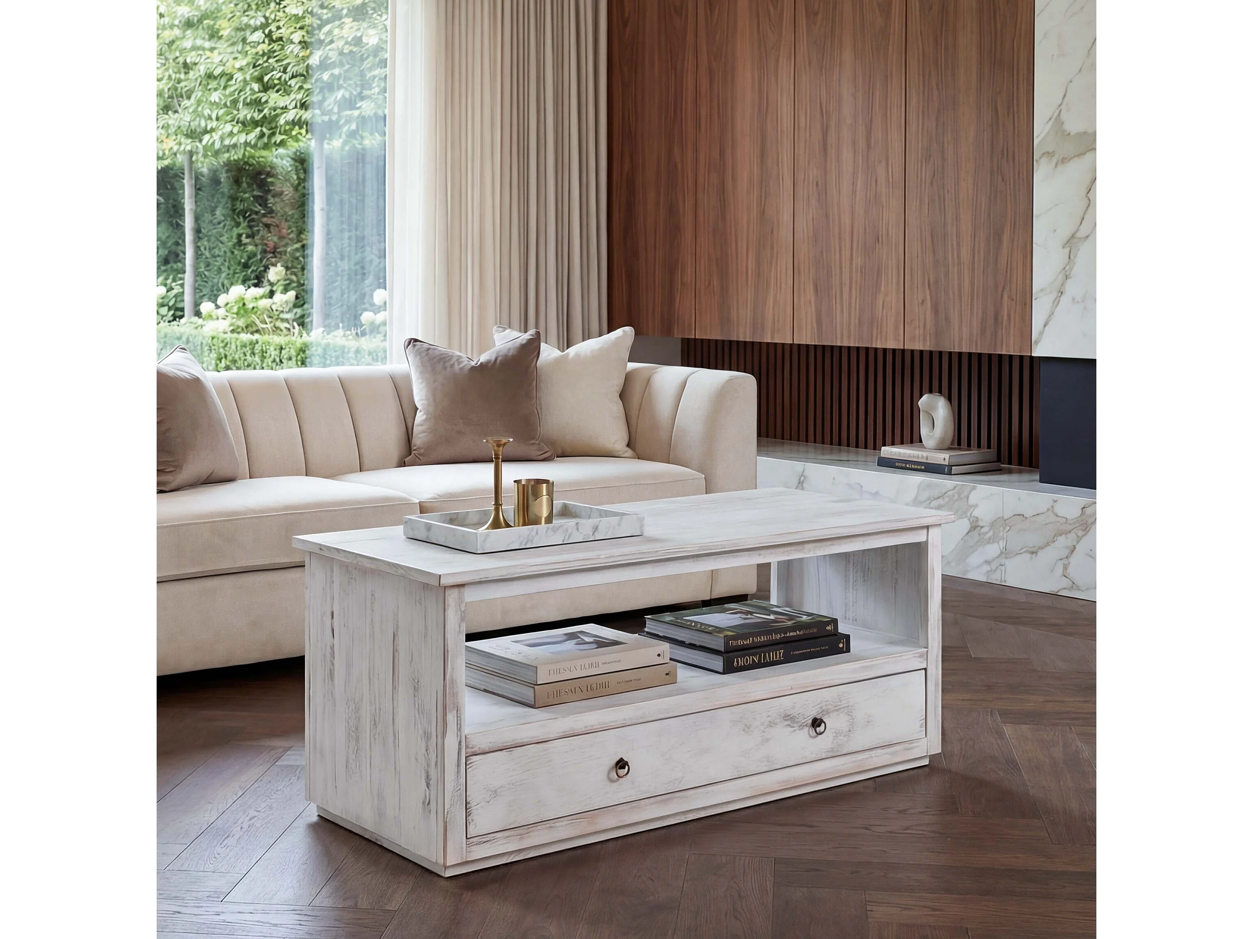 Mesa de centro estilo shabby, blanco