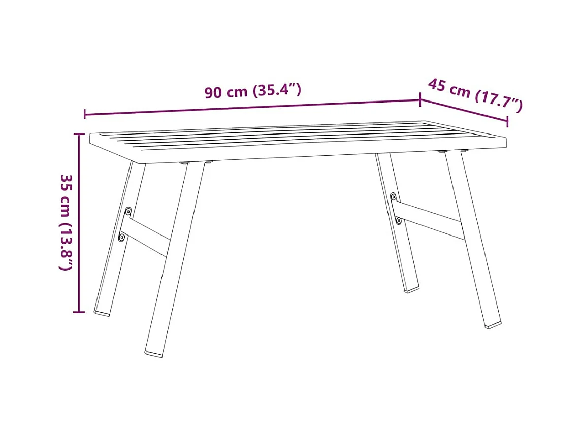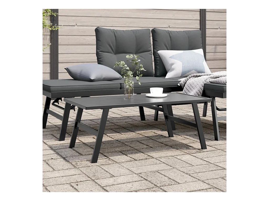 Mesa de centro de jardín negra 90x45x35 cm acero con recubrimiento en polvo